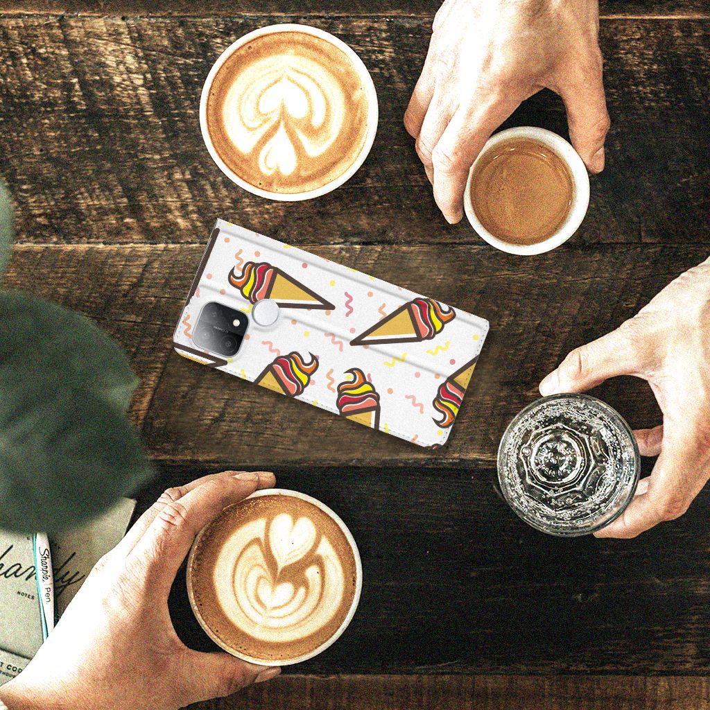 Een vrolijke OPPO A15 Flip Style Cover met daarop verschillende ijsjes. Als je daar geen zomers gevoel meer van krijgt, weten wij het ook niet meer. De zomer en ijsjes zijn onlosmakelijk met elkaar verbonden. Tijdens een bezoekje aan het strand mag een lekker ijsje bijvoorbeeld niet ontbreken. Een design hoesje met lekkere Icecream print past daar natuurlijk ook ontzettend goed bij. Jouw telefoon is helemaal beschermd met een stand case met ijsjes design. De aankoop van deze case is een heerlijke investering, die zich gegarandeerd terugbetaalt. Alle zijden van dit hoesje worden bedrukt met ijsjes. De case heeft een speciale standaard en de houder aan de binnenzijde is van TPU. Onder alle weersomstandigheden zal deze case met opbergvakje perfect functioneren, ook in de zomer met een ijsje in je hand. Dit smaakvolle hoesje is zeer goedkoop te bestellen en wordt zeer snel bezorgd.
