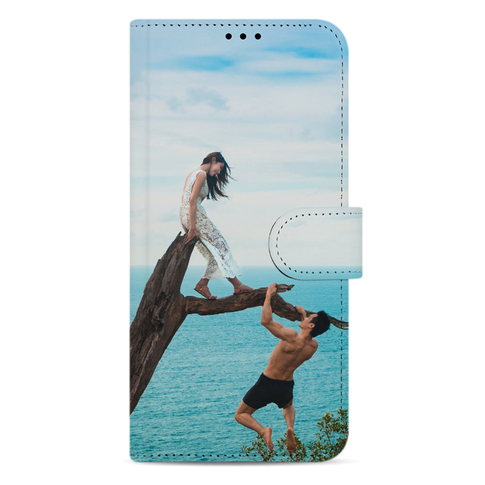 OPPO A15 Fotohoesje Maken. Ben je op zoek naar een originele en unieke bescherming voor je telefoon? Dan ben je bij B2C Telecom aan het juiste adres! Je kunt via onze website gemakkelijk een telefoonhoesje ontwerpen met foto's, tekst of bedrijfslogo. De mogelijkheden zijn eindeloos. Wees creatief en upload foto's of plaatjes van je kinderen, huisdieren, familie, hobby of favoriete voetbalclub. De foto's of plaatjes kun je in de gewenste grootte plaatsen of draaien voor een speels effect. Maak het hoesje persoonlijker door je naam of quote toe te voegen. Je kunt kiezen uit verschillende lettertypes; van strak tot vetgedrukt of ga je liever voor iets sierlijks? Het kan allemaal! De kers op de taart is natuurlijk de toevoeging van een glossy-effect! Kies uit verschillende effecten en jouw hoesje wordt subtiel bedrukt met een glossy-effect. Kortom, wij bieden verschillende mogelijkheden om jouw hoesje zo persoonlijk en uniek mogelijk te maken! Jouw ontwerp wordt bedrukt op een wit hoesje gemaakt van kunstleer. De binnenkant van het hoesje is donkergrijs en heeft drie vakjes voor een pasje. De houder waar je je telefoon in vast zet, is gemaakt van TPU. Door het lipje blijft het hoesje stevig dicht. Overtuigd? Ontwerp dan vandaag nog je eigen telefoonhoesje en ontvang jouw ontwerp binnen een aantal werkdagen in huis!