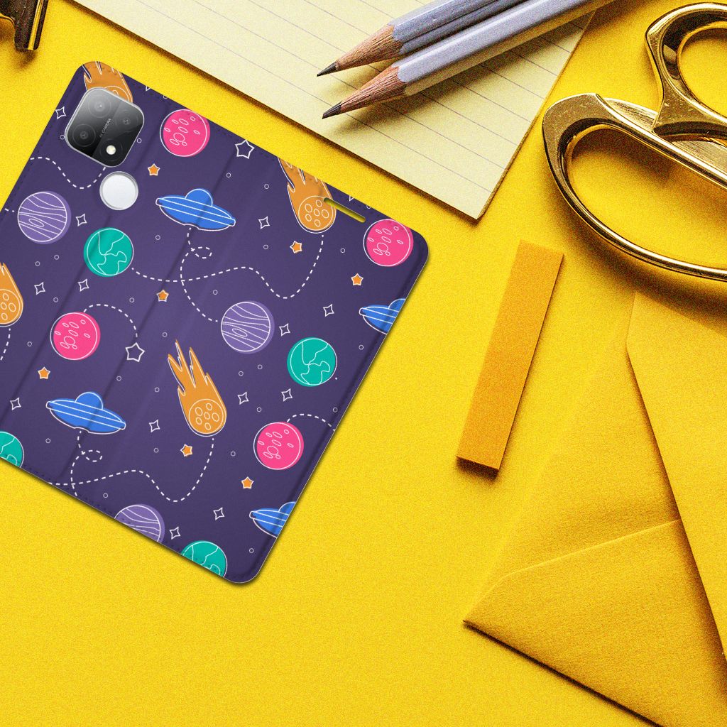Ben je een beetje geïnteresseerd in buitenaards leven? Dan kan je wel eens enthousiast raken van deze OPPO A15 Hippe Standcase met Space print. Dus mensen die van science fiction houden zullen deze case ongetwijfeld mooi vinden. Er zijn verschillende planeten en vliegende schotels te ontdekken in dit design hoesje. Dit kunstwerkje is voor heel weinig geld te bestellen op onze website. Je krijgt er maximale bescherming van je smartphone voor terug. De stand case beschermt jouw telefoon aan alle kanten en beschikt over een 1 opbergvakje en een speciale standaard. Het hoesje wordt afgesloten met een magneet aan de binnenzijde. De houder aan de binnenzijde is van TPU. Je zult ontdekken dat dit hele stevige telefoonhoesje een heel goede bescherming biedt tegen alle vormen van schade. Met dit hoesje hoef je niet bang te zijn dat er krassen op je design komen of scheuren in je scherm.