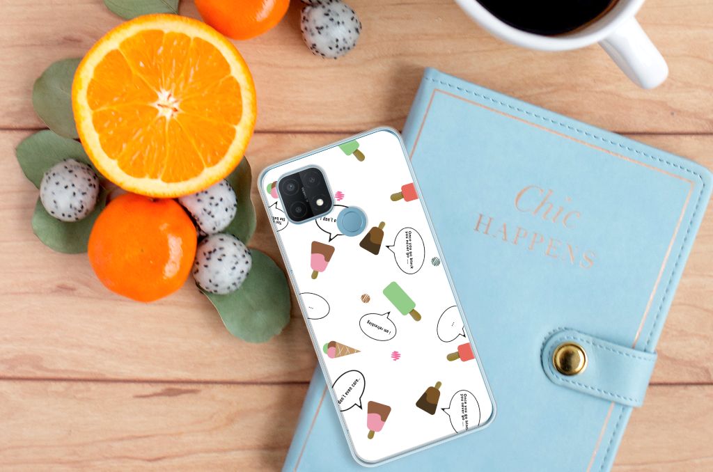 Van deze vrolijke OPPO A15 Siliconen Case met daarop verschillende soorten ijsjes met tekstwolkjes krijg je sowieso een vrij en zomers gevoel. De zomer komt naar je toe met deze print van ijsjes met tekstwolkjes. Ben je op het strand, dan ontbreekt een lekker ijsje natuurlijk niet. Net zoals je je smartphone bij de hand hebt, met daaromheen een design hoesje met bijzondere ijsjes en tekstwolkjes. Jouw telefoon kan dan de bescherming in de vorm van een tpu hoesje met ijsjes zeer goed gebruiken. De bovenkant van dit hoesje wordt bedrukt met ijsjes en tekstwolkjes, de zijkanten blijven doorzichtig. De case is gemaakt van schokabsorberend materiaal en past altijd in je broekzak. Onder alle weersomstandigheden zal deze TPU case perfect functioneren, ook in de zomer met een ijsje in je hand.