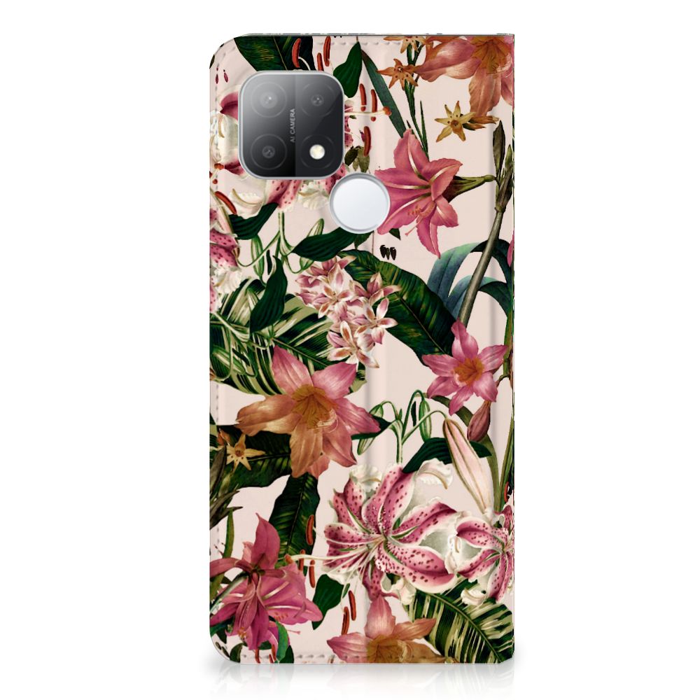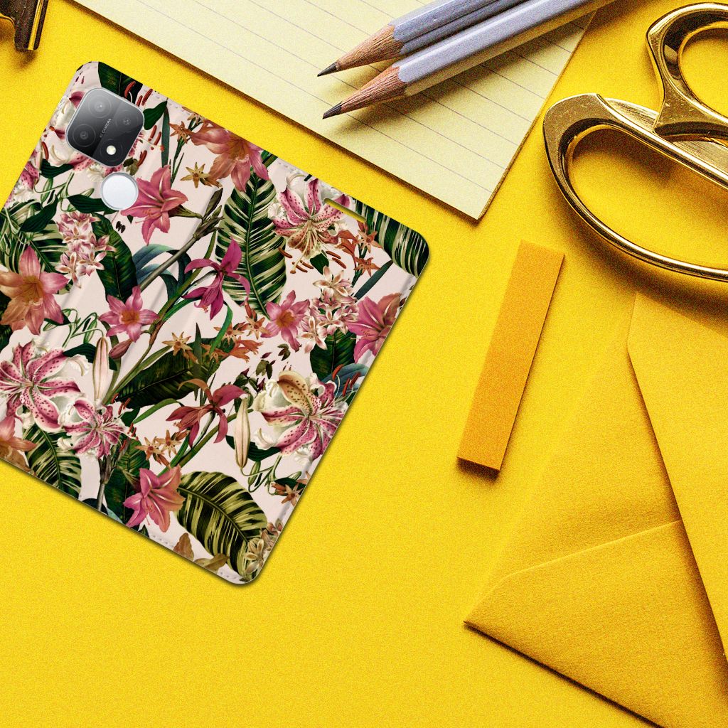 OPPO A15 TPU Hoesje Pauw met Bloemen