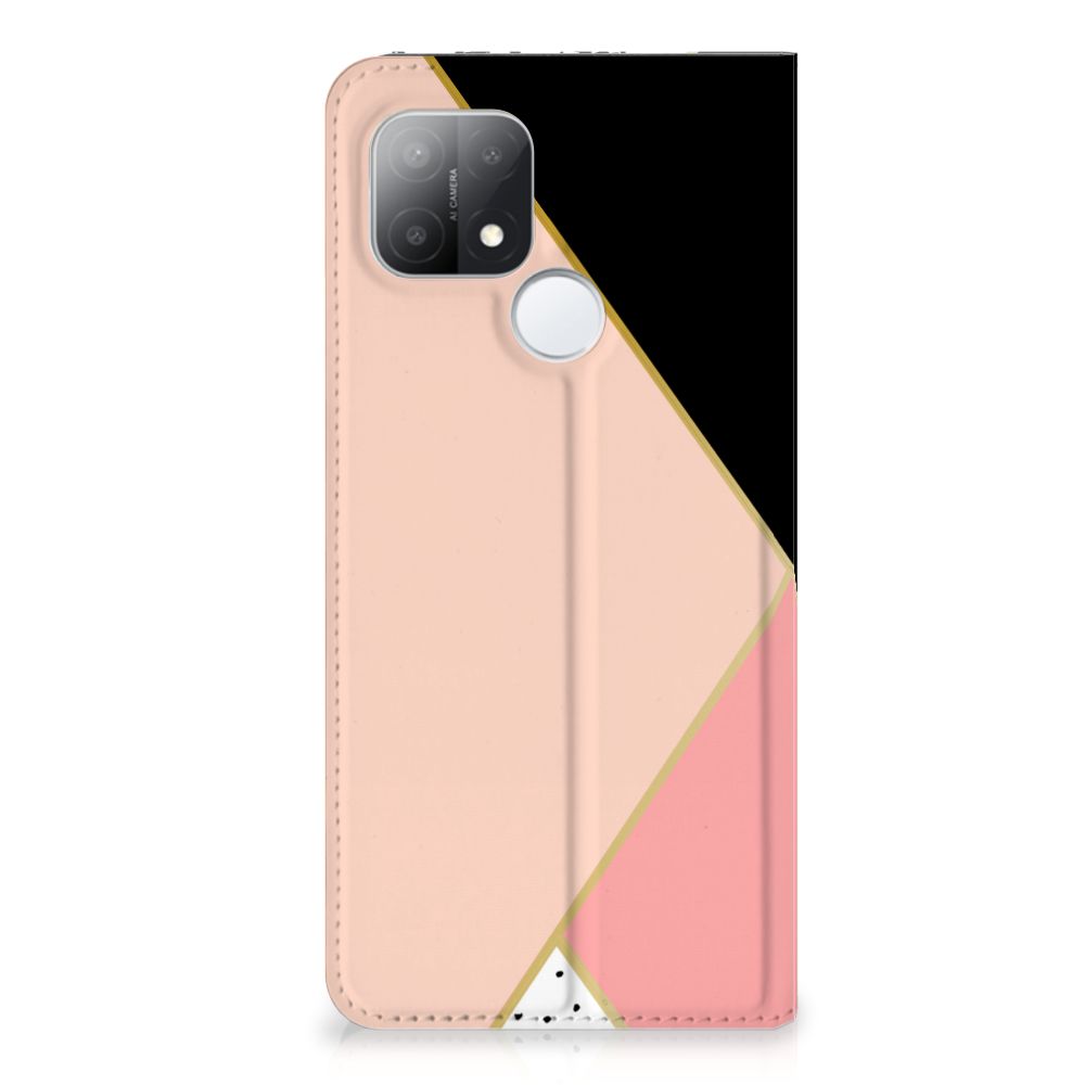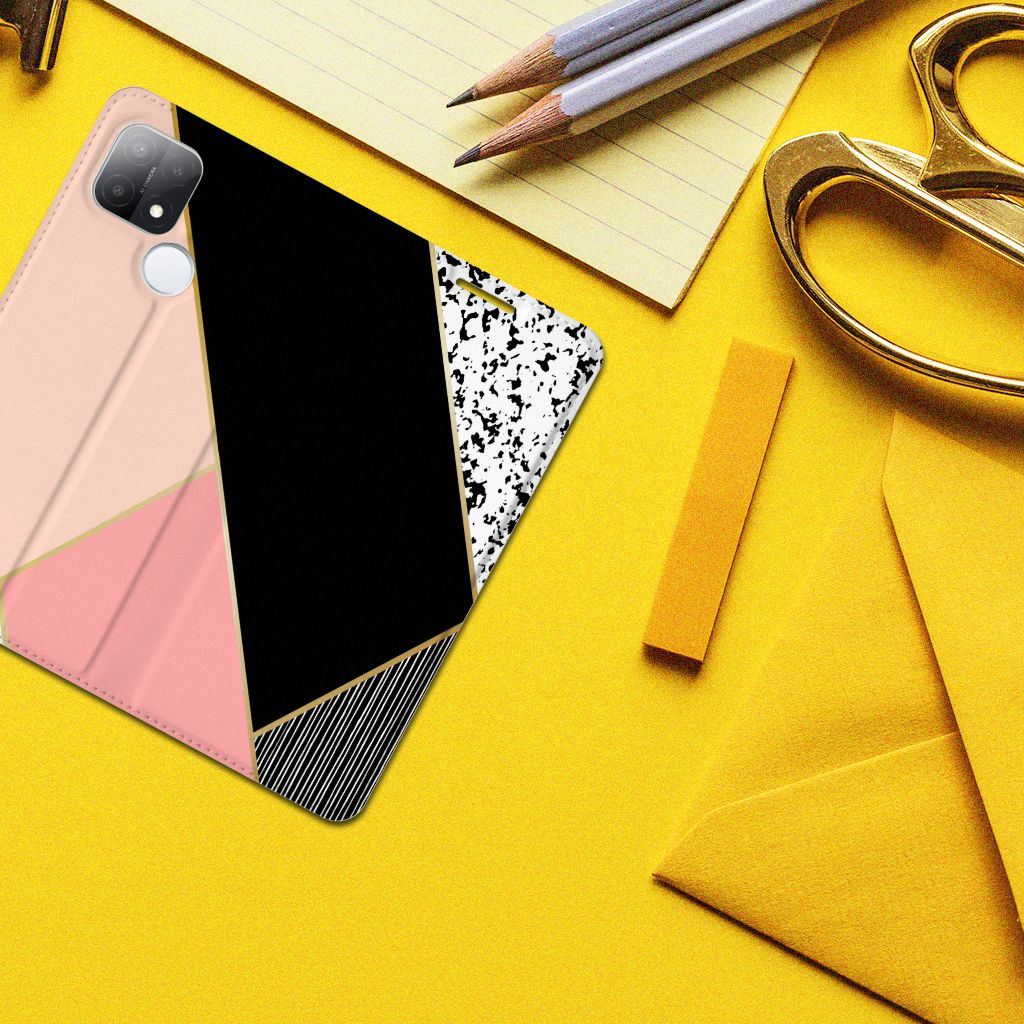OPPO A15 Print Stand Case Zwart Roze Vormen