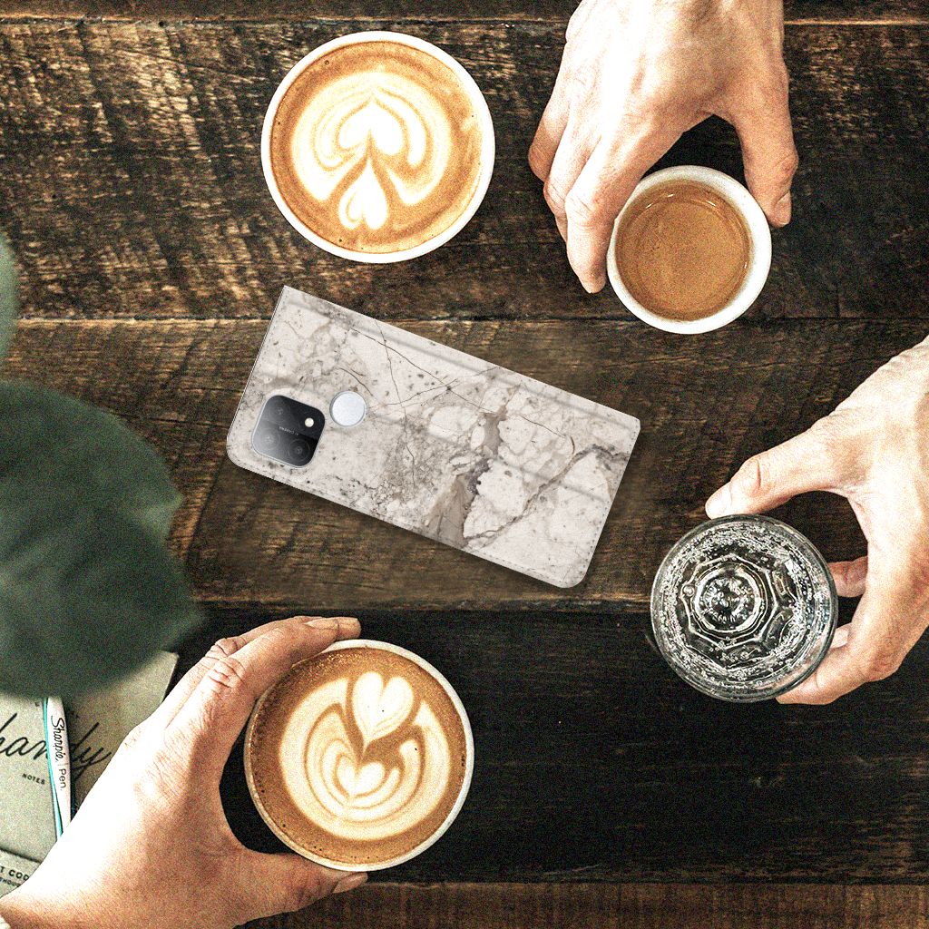 Dit design hoesje met Marmer Beige is voor de artistieke personen onder ons. De Grieken en Romeinen wisten het steen al te waarderen door het als bouw- en bekledingsmateriaal toe te passen. Naast het witte Carrara marmer met haar zacht grijze geaderde belijning zijn de diverse marmersoorten in een ruim kleurenpallet te krijgen. We hebben verschillende kleuren op design hoesjes gezet, zoals in dit geval beige marmer. Dit is een OPPO A15 Standcase met marmer in beige kleur. Het marmer wordt bedrukt op alle zijden van een stand case, die beschikt over 1 vakje voor een pasje en toebehoren en een magnetische sluiting aan de binnenkant. Verder heeft de case een houder van TPU. De rijkheid aan kleuren en varianties in afwerking geeft designers de vrijheid om met marmer hele mooie architectonische projecten te realiseren. Wij hebben onze designer ook veel vrijheid gegeven. Het resultaat zie je terug in deze stand case met beige marmer, dat de ideale bescherming voor jouw smartphone biedt.