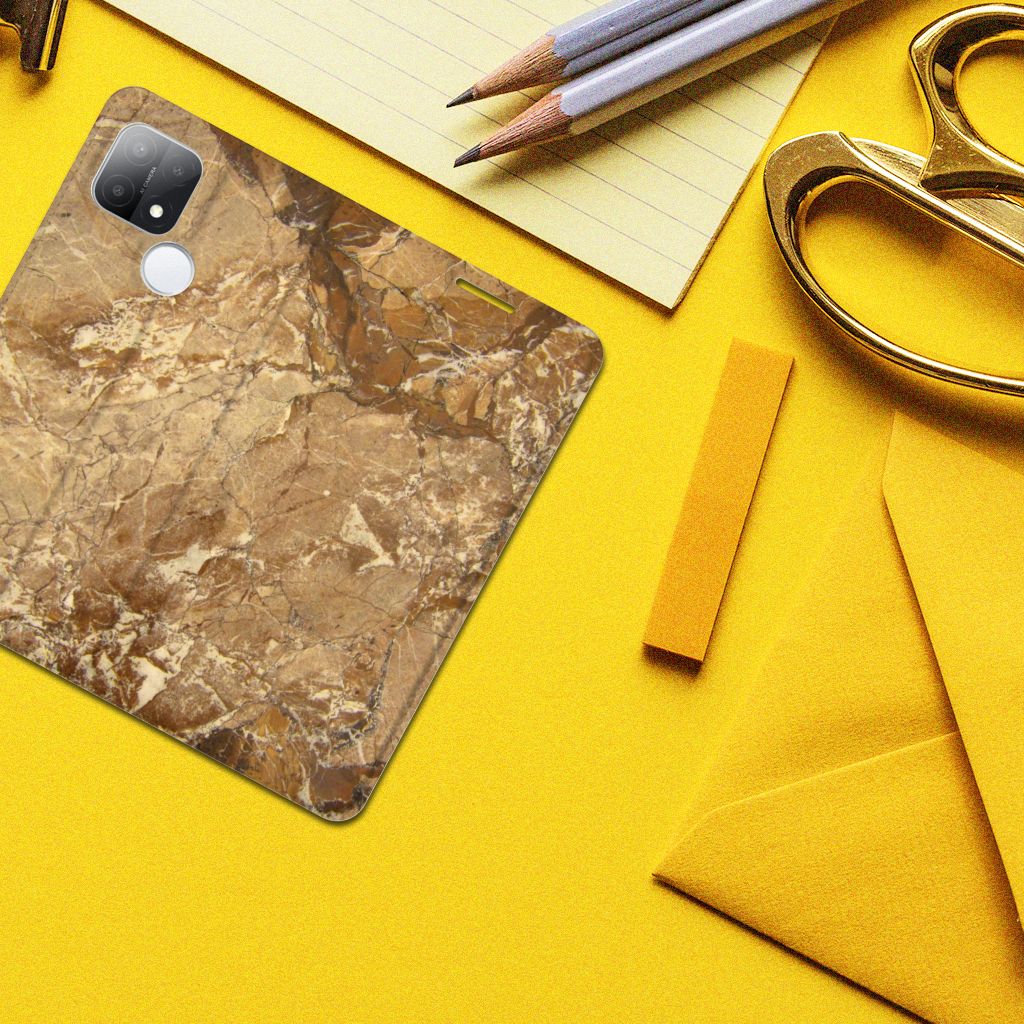 Dit design hoesje met Marmer in lichtbruine kleur is voor de artistiekelingen onder ons. De Grieken en Romeinen wisten het marmer al te waarderen door het in de bouw toe te passen. Naast het witte marmer zijn de diverse soorten marmer in een gevarieerde kleurensamenstelling te krijgen. We hebben verschillende mooie kleuren op design hoesjes gezet, zoals in dit geval het lichtbruine marmer. Dit is een OPPO A15 Standcase met marmer in lichtbruine kleur. Het marmer wordt bedrukt op alle zijden van een stand case, die beschikt over 1 vakje voor een pasje en een magnetische sluiting aan de binnenzijde. Verder heeft de hoes een houder van TPU. Door de rijkdom aan kleuren en varianties in afwerking kunnen ontwerpers met marmer schitterende architectonische projecten realiseren. Wij hebben hetzelfde gedaan en onze ontwerper veel vrijheid geboden. Het resultaat zie je terug in deze stand case met lichtbruin marmer, dat de ideale bescherming voor jouw smartphone is.