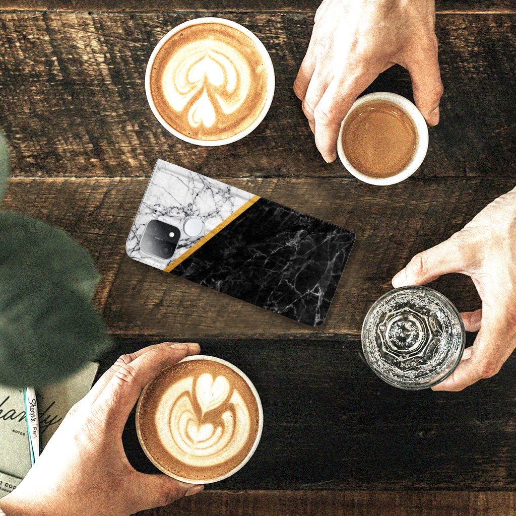 OPPO A15 Bookcase Marmer Zwart - Origineel Cadeau Vader