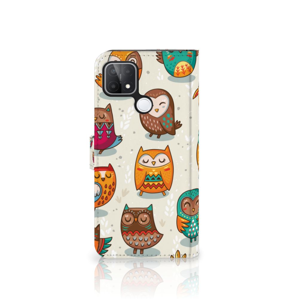 OPPO A15 Telefoonhoesje met ruimte voor drie pasjes Vrolijke Uilen