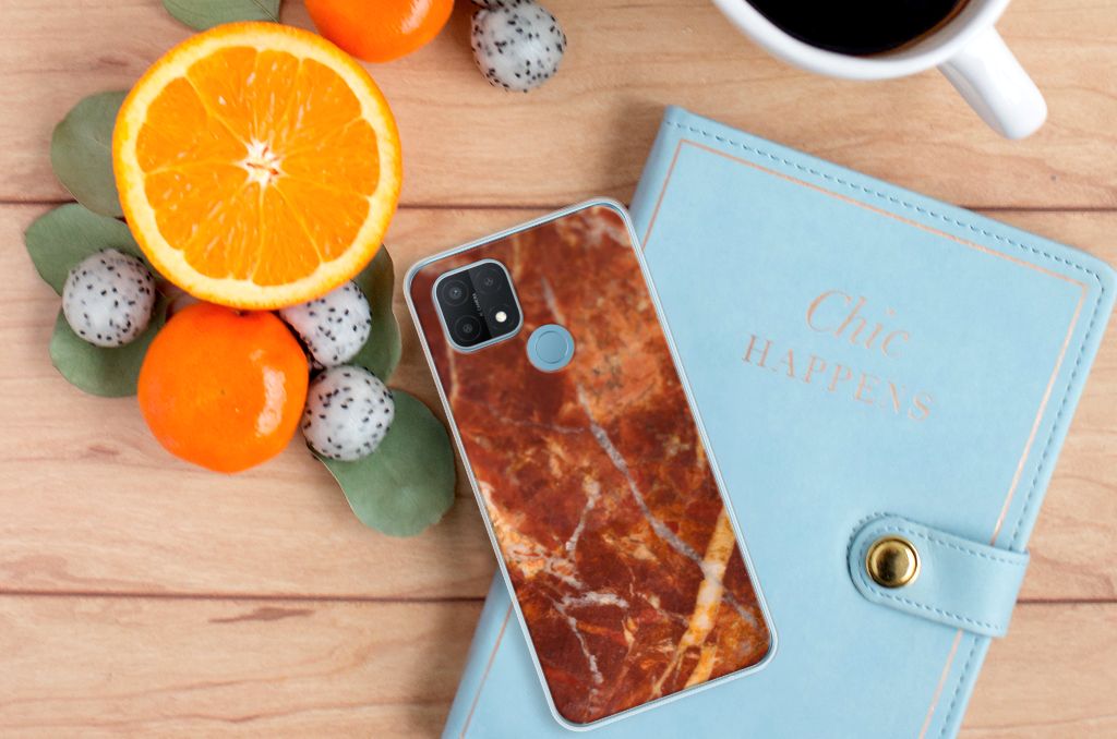 Dit design hoesje met Marmer Bruin is voor de artistieke personen onder ons. De Grieken en Romeinen wisten het al te waarderen door het als bouw- en bekledingsmateriaal toe te passen. Naast het witte Carrara marmer met haar zacht grijze geaderde belijning zijn de diverse soorten in een ruim kleurenpallet te krijgen. We hebben verschillende kleuren op design hoesjes gezet, zoals in dit geval bruin marmer. Dit is een OPPO A15 TPU Siliconen Hoesje met marmer in bruine kleur. Het marmer wordt bedrukt op de voorkant van een tpu case, die beschikt over opstaande randen aan de voorkant en heel goed combineert met een screenprotector. De rijkheid aan kleuren en varianties in afwerking geeft ontwerpers de vrijheid om met marmer hele mooie architectonische projecten te realiseren. Wij hebben onze designer ook veel vrijheid gegeven. Het resultaat zie je terug in deze tpu case met bruin marmer, die jouw smartphone goed beschermt. De zijkanten van de case worden niet bedrukt met marmer.