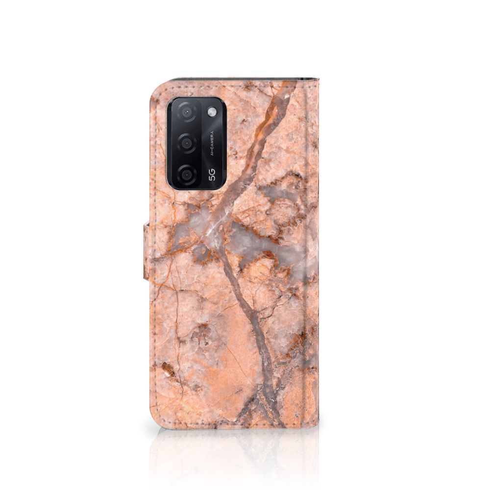 OPPO A16/A16s/A54s Bookcase met pasjes Marmer Oranje