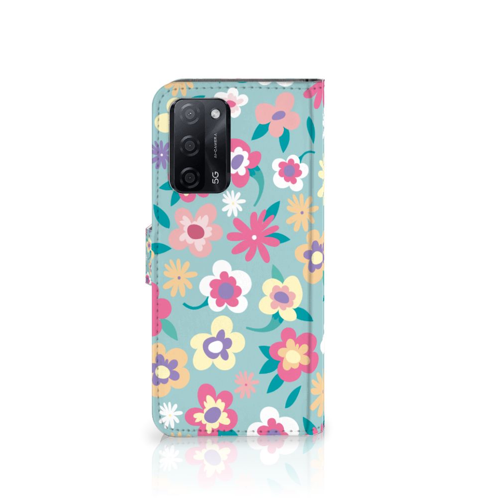 OPPO A16/A16s/A54s Telefoonhoesje met Pasjes Pauw met Bloemen