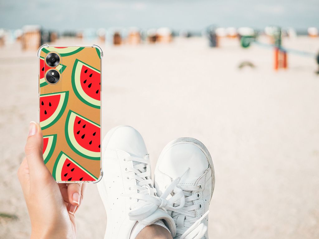 Ben je op zoek naar een uniek telefoonhoesje voor je OPPO A17? Dan ben je bij B2C Telecom aan het juiste adres! Speciaal voor jou hebben we dit prachtige Watermelons design in onze collectie hoesjes opgenomen. Het design wordt bedrukt op een Beschermhoes en is gemaakt van flexibel rubber. Het hoesje is perfect voor de actieve smartphonegebruiker door de opstaande randen/hoeken. Denk aan mensen die veel sporten, reizen of wandelen en net iets meer zekerheid willen als het op hun geliefde telefoon aankomt. Het design wordt alleen aan de bovenkant van het hoesje bedrukt en de randen blijven transparant. Aan de zijkanten zijn uitsparingen gemaakt waardoor je met gemak alle knoppen en poorten kunt bedienen. Wij adviseren om dit hoesje in combinatie met een screenprotector te gebruiken voor een langere levensduur van je telefoon. Wil je dit hoesje nog iets extra's geven? Voeg dan gratis je naam of een quote toe! Is dit design hoesje toch niet helemaal wat je zocht? Ontwerp dan zelf een hoesje in ons ontwerpprogramma.