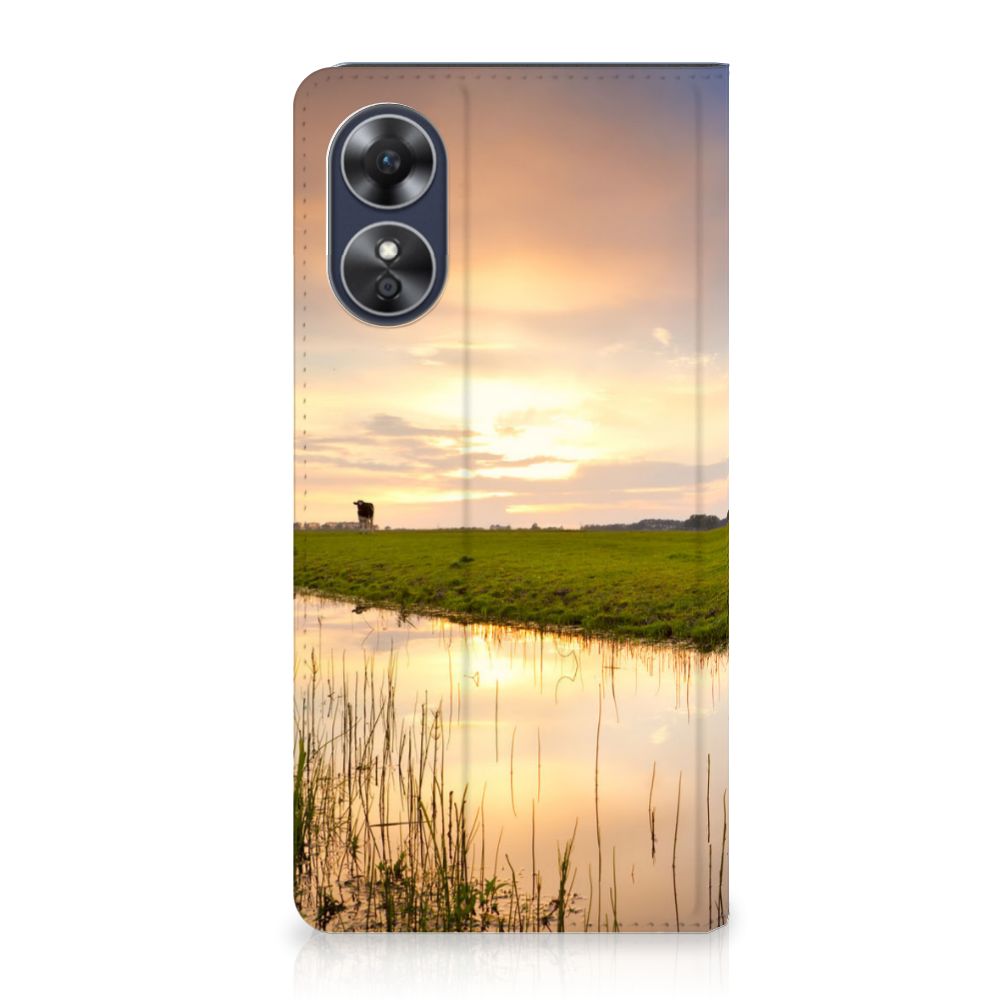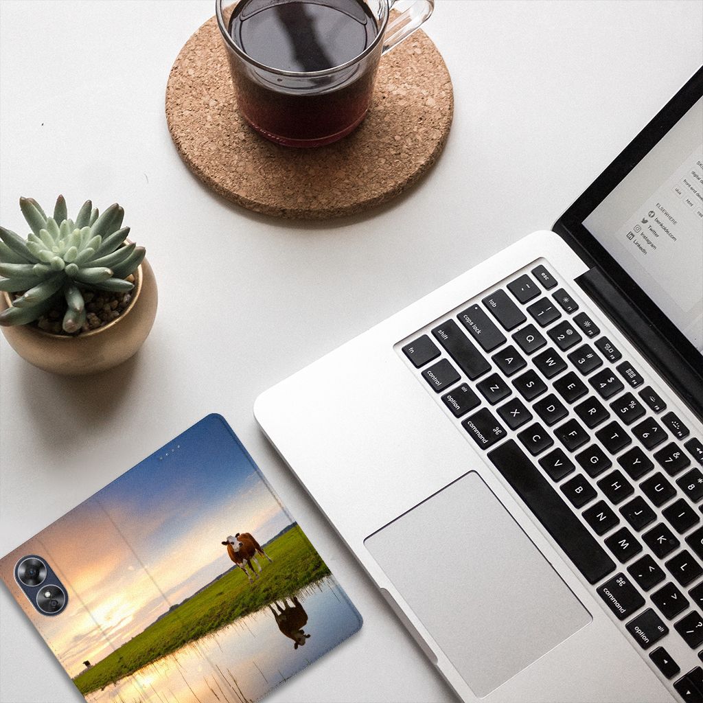 Het levert een idyllisch plaatje op, dit hoesje met een koe en ondergaande zon op de achtergrond. Door een koe buiten te laten lopen en grazen, hebben ze minder kans om ziek te worden. De Koe graast het liefst met soortgenoten, al zijn deze een stukje van de koe op de case verwijderd. Dit levert ook een mooi plaatje op, zoals je kunt zien op dit design hoesje. Deze stand case ziet er strak uit en is voorzien van verschillende uitsparingen. Een OPPO A17 Hoesje maken met magneet aan de binnenzijde beschermt jouw smartphone overal. Alle zijden zijn bedrukt. Koeien hebben lange graasperioden nodig, afgewisseld door rust- en herkauwperioden. Zo goed als grazen voelt voor koeien, zo lang zal jouw design hoesje meegaan. De binnenkant van de stand case is van TPU, de buitenzijde van leer.