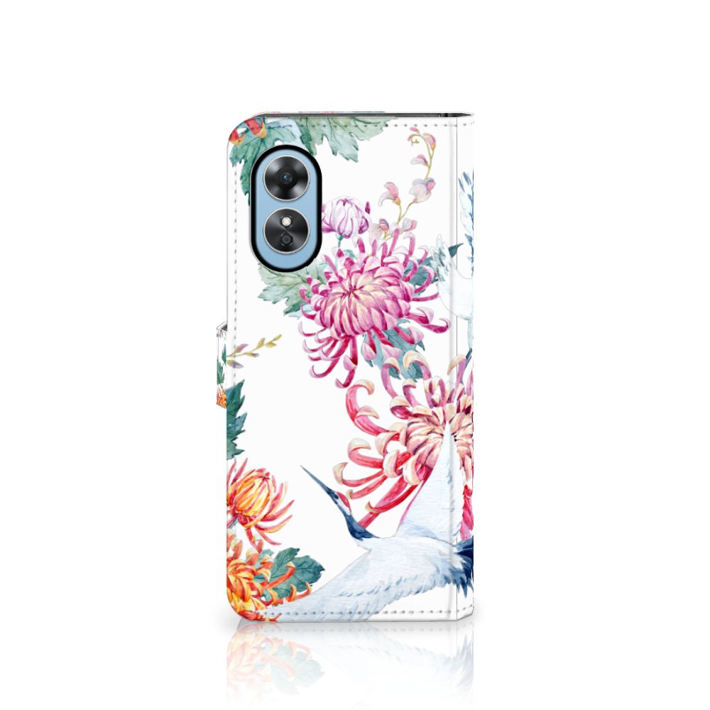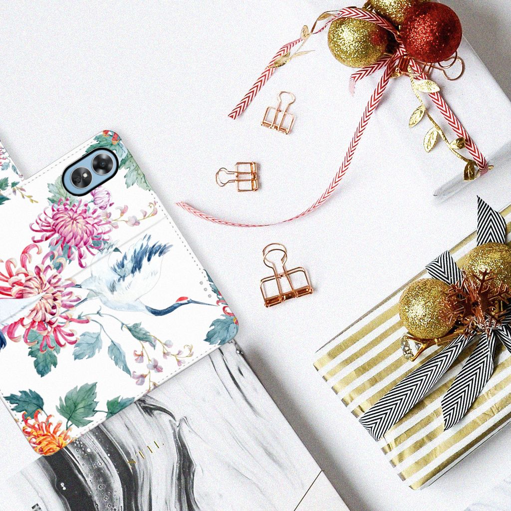 OPPO A17 Telefoonhoesje sluit met magnetische lipje Bird Flowers