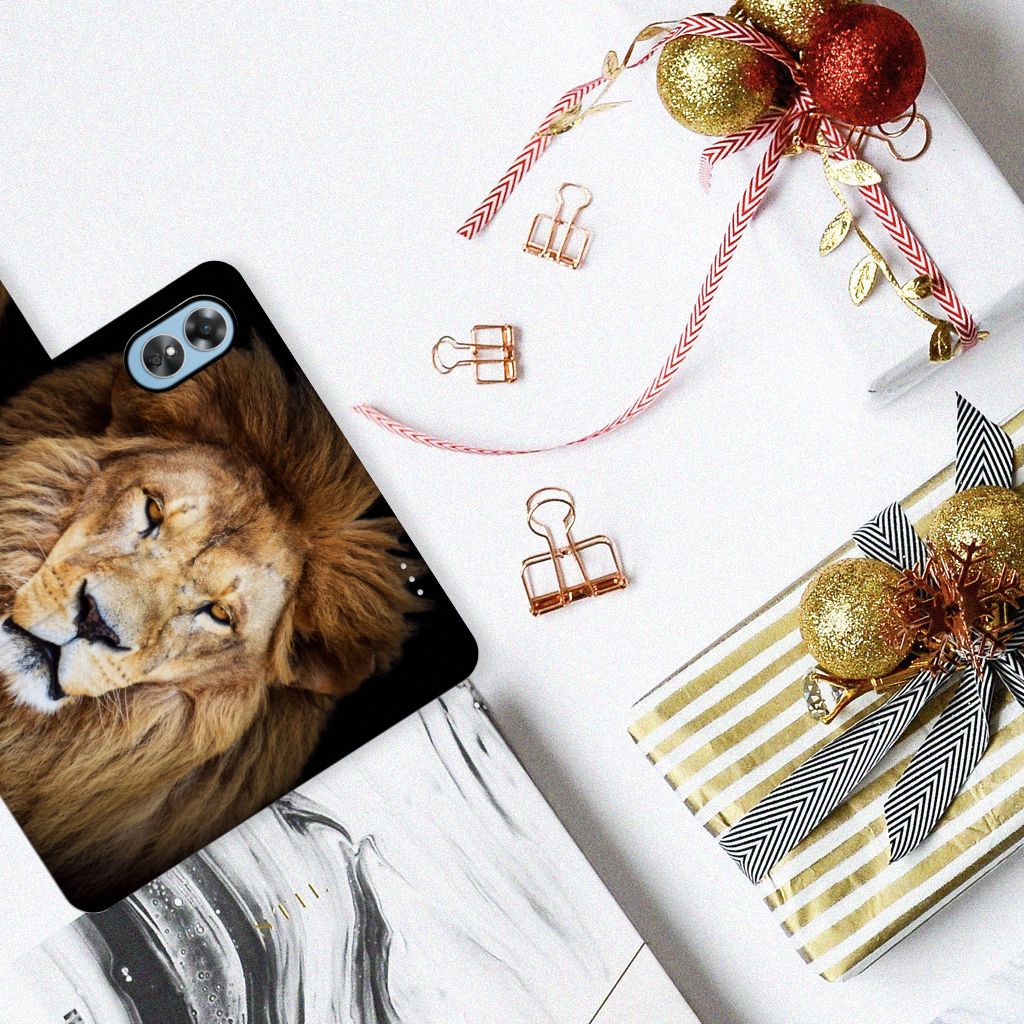 OPPO A17 Telefoonhoesje met Pasjes en met magnetische sluitclip Leeuw
