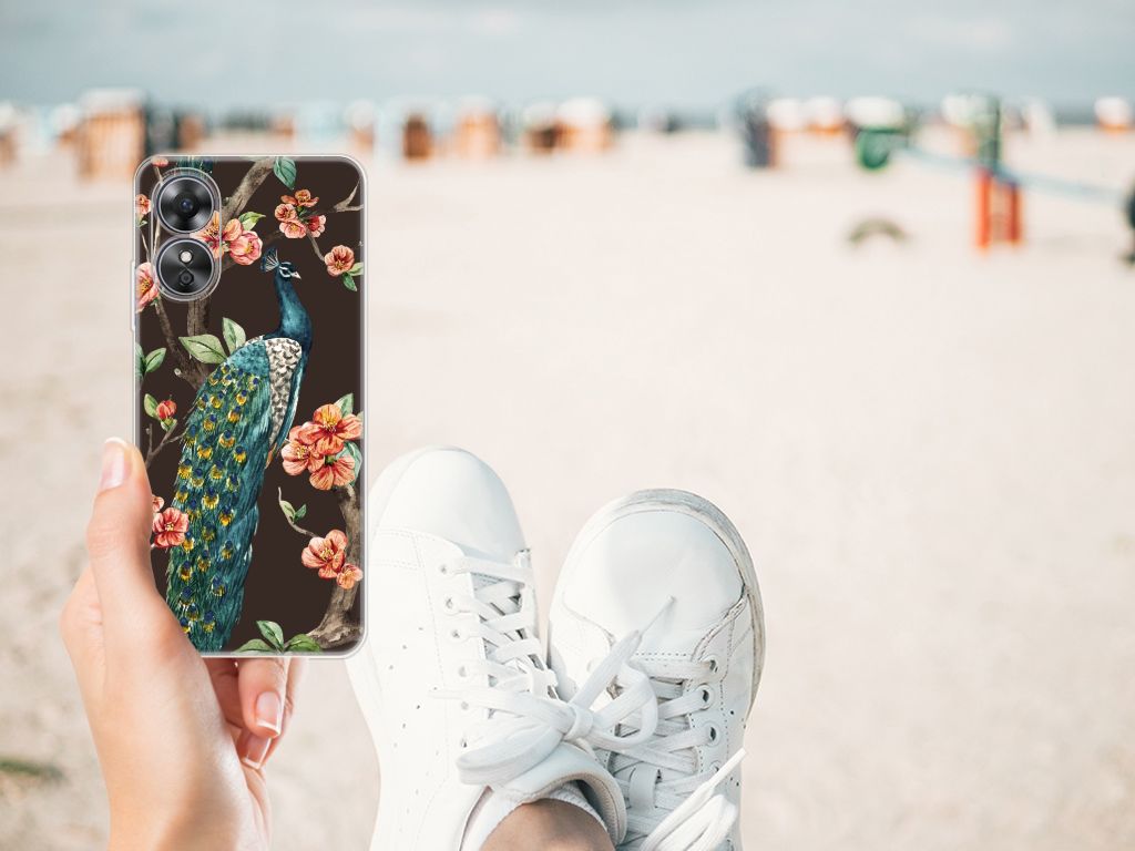 Op deze OPPO A17 TPU Hoesje kun jij zo trots als een pauw zijn. Met dit geweldige design hoesje met een Pauw met Bloemen erop kun jij je smartphone voor zeer lange tijd beschermen. Deze tpu case is zeer duurzaam en gemaakt van zeer elastisch materiaal. Je bent zeer flexibel met deze TPU case met print van een pauw. Met een tpu case met fleurige bloemen en trotse pauwen wordt jouw telefoon er een stuk mooier op. De onderscheidende case heeft opstaande randen aan de voorzijde en wordt alleen aan de bovenzijde bedrukt. Zie jij liever jouw eigen huisdier op een telefoonhoesje? Dan adviseren we je zelf een hoesje te ontwerpen met onze unieke Phone Case Designer.