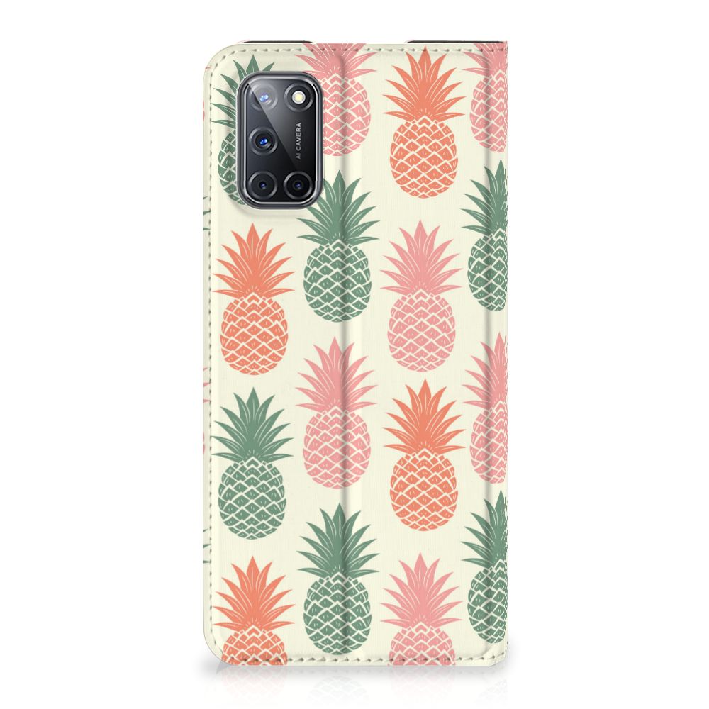 Ananas is een woord uit het Tupi, de taal van de Tupi-indianen, en betekent uitmuntende vrucht. Dit fruit van zeer hoge kwaliteit staat op onze superieure boekhoesjes, stand cases, hard cases en TPU cases. Jij blijft er gezond uitzien als je zo nu en dan een hap neemt van een Ananas , jouw smartphone blijft tip top in orde als je er een leuk telefoonhoesje omheen doet. Een ananas heeft stevig, veerkrachtig vruchtvlees. Een beetje te vergelijken met het TPU in onze hoesjes. TPU is elastisch materiaal, dat zeer buigzaam is. Vandaar dat het zeer schokbestendig is. Het ananas design staat op een stand case. Deze OPPO A52 | A72 Flip Style Cover beschermt jouw telefoon aan alle kanten en beschikt over een 1 opbergvakje en een speciale standaard. Het hoesje wordt afgesloten met een magneet aan de binnenzijde. De houder aan de binnenzijde is van TPU.