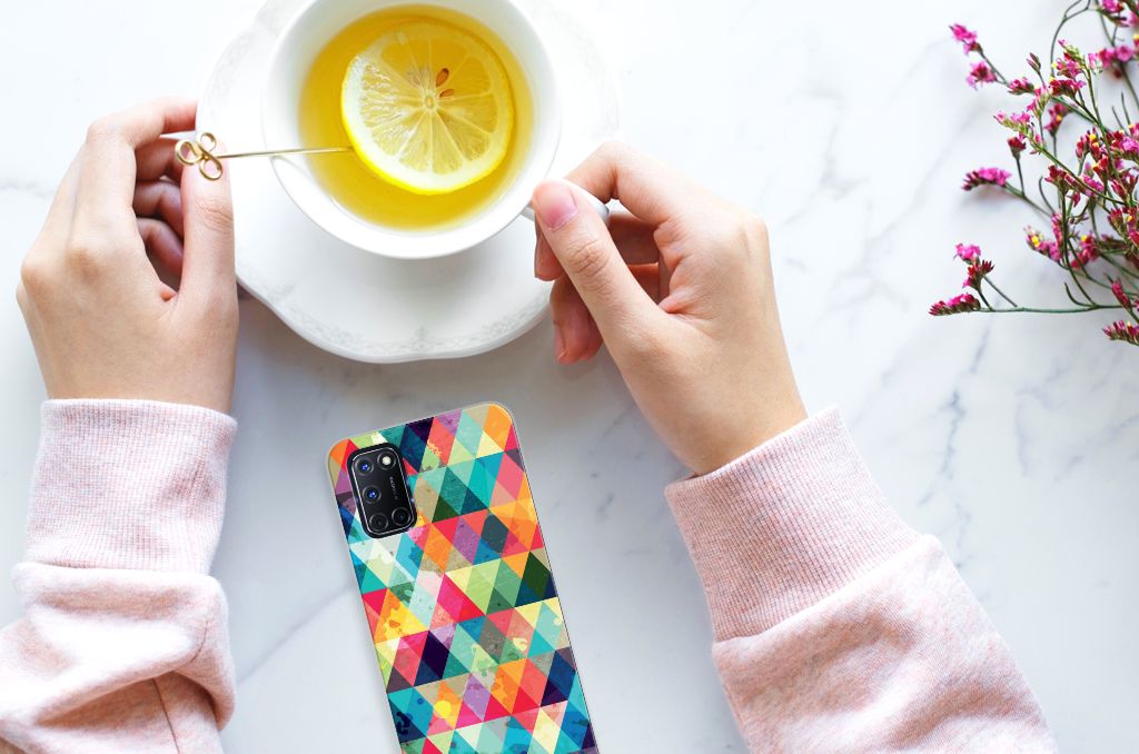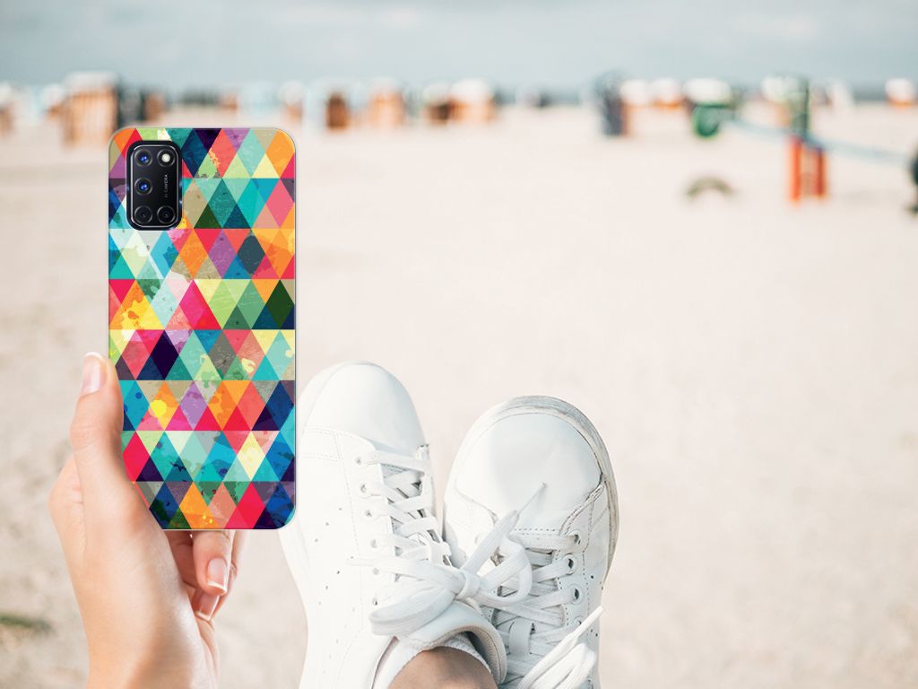Van dit geruite design hoesje moet je een beetje houden. Maar als je het eenmaal in bezit hebt, ben je waarschijnlijk binnen no time verkocht. Het design heeft ruitjes in alle kleuren van de regenboog en door de grijze achtergrond kan het hoesje enigszins druk overkomen. Maar tegelijkertijd is dit de kracht van het hoesje. Met dit design hoesje Geruit zal je namelijk heel erg opvallen. Dit is voor veel vooral jonge smartphone gebruikers een belangrijk voordeel. Deze geruite print staat op een OPPO A52 | A72 TPU bumper. Dit zeer flexibele smartphone hoesje heeft alle nodige uitsparingen en past altijd in je broekzak. De case is aan de bovenkant bedrukt, de randen blijven transparant.