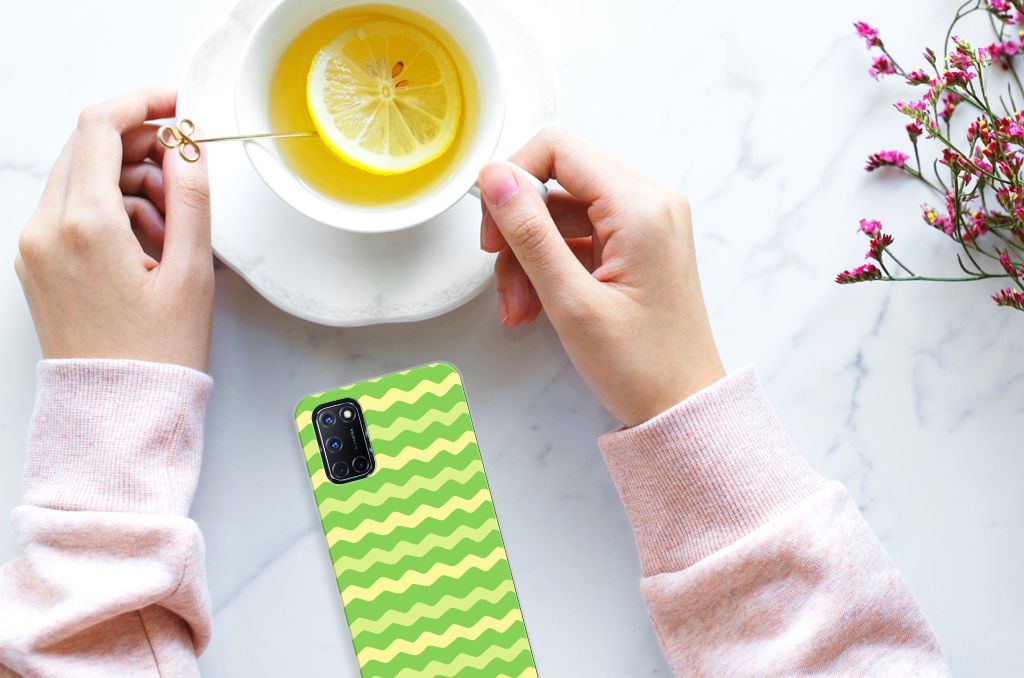 Dit groene design hoesje met groene golven is speciaal ontworpen voor jouw telefoon. We hebben een vleugje geel toegevoegd, zodat er sprake is van variatie. Dit Waves Green hoesje ziet er flitsend uit. Dat kan ook niet anders, als je weet dat we veel energie steken in het bedenken van originele designs. Een heel strak OPPO A52 | A72 TPU bumper, met zeer veel opties. Past dit groene design hoesje met golven goed bij jou? Bestel het dan vandaag nog, tegen zeer lage kosten. Het design staat op een TPU case. Dit hoesje wordt alleen aan de bovenkant bedrukt en is zeer flexibel. De randen van het hoesje met groene golven blijven transparant en worden niet bedrukt. Met dit hoesje past jouw telefoon altijd in je broekzak.
