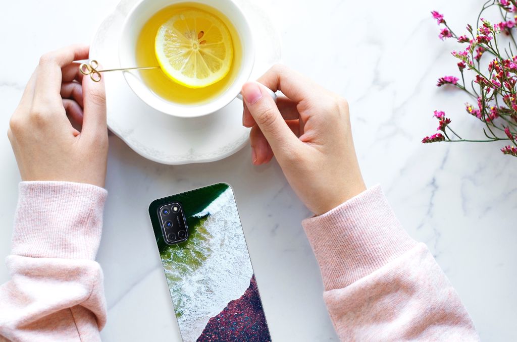Ben je een beetje een artistiek type? Dan kan je wel eens enthousiast raken van dit smartphonehoesje. ‘Sea in Space’, zo noemt onze grafisch designer dit ontwerp. Dus mensen die van zon en zee kunnen genieten en tegelijkertijd van science fiction houden zullen deze case ongetwijfeld mooi vinden. Een beetje glitter en glamour zou je met een beetje fantasie ook nog wel kunnen ontdekken in dit design hoesje. Dit artistieke kunstwerkje is voor heel weinig geld te bestellen op onze website. Je krijgt er maximale bescherming van je OPPO A52 | A72 voor terug. Het design staat op een TPU Hoesje. Dit hoesje wordt alleen aan de bovenkant bedrukt en is zeer flexibel. De randen van het hoesje blijven transparant en worden niet bedrukt.