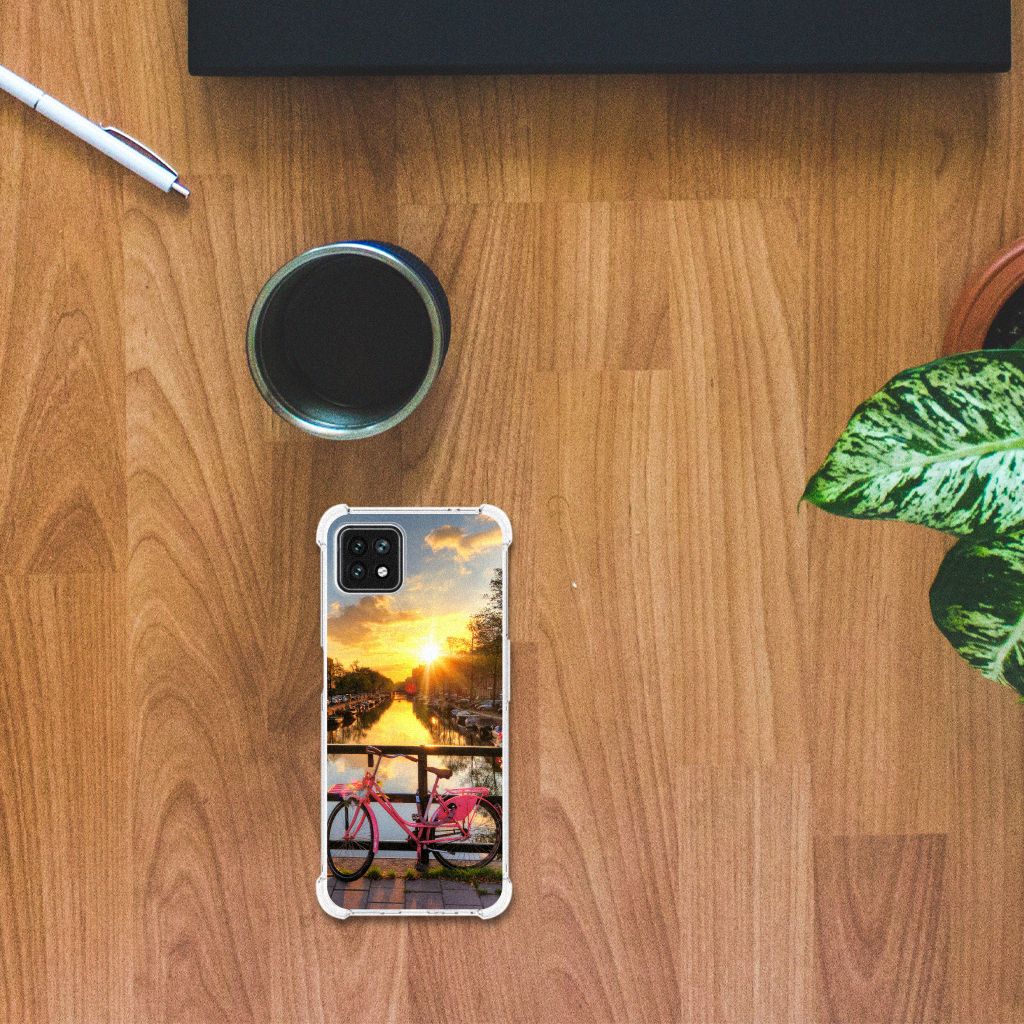 Ben je op zoek naar een uniek telefoonhoesje voor je OPPO A53 5G | A73 5G? Dan ben je bij B2C Telecom aan het juiste adres! Speciaal voor jou hebben we dit prachtige Amsterdamse Grachten design in onze collectie hoesjes opgenomen. Het design wordt bedrukt op een Telefoonhoesje met valbescherming en is gemaakt van flexibel rubber. Het hoesje is perfect voor de actieve smartphonegebruiker door de opstaande randen/hoeken. Denk aan mensen die veel sporten, reizen of wandelen en net iets meer zekerheid willen als het op hun geliefde telefoon aankomt. Het design wordt alleen aan de bovenkant van het hoesje bedrukt en de randen blijven transparant. Aan de zijkanten zijn uitsparingen gemaakt waardoor je met gemak alle knoppen en poorten kunt bedienen. Wij adviseren om dit hoesje in combinatie met een screenprotector te gebruiken voor een langere levensduur van je telefoon. Wil je dit hoesje nog iets extra's geven? Voeg dan gratis je naam of een quote toe! Is dit design hoesje toch niet helemaal wat je zocht? Ontwerp dan zelf een hoesje in ons ontwerpprogramma.