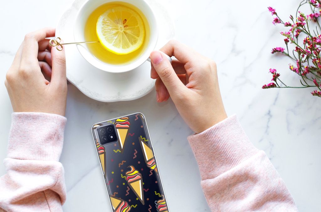 Een vrolijke OPPO A53 5G | OPPO A73 5G Siliconen Case met daarop verschillende ijsjes. Als je daar geen zomers gevoel meer van krijgt, weten wij het ook niet meer. De zomer en ijsjes zijn onlosmakelijk met elkaar verbonden. Tijdens een bezoekje aan het strand mag een lekker ijsje bijvoorbeeld niet ontbreken. Een design hoesje met lekkere ijsjes print past daar natuurlijk ook ontzettend goed bij. Jouw telefoon is goed beschermd met een tpu case met Icecream design. De aankoop van deze case is een heerlijke investering, die zich gegarandeerd terugbetaalt. De bovenkant van dit hoesje wordt bedrukt met ijsjes, de zijkanten blijven doorzichtig. De case is gemaakt van schokabsorberend materiaal en past altijd in je broekzak. Onder alle weersomstandigheden zal deze TPU case perfect functioneren, ook in de zomer met een ijsje in je hand. Dit smaakvolle hoesje is zeer goedkoop te bestellen en wordt zeer snel bezorgd.
