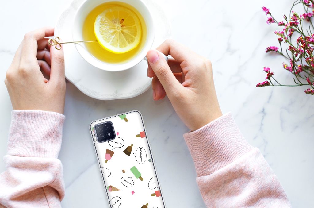 Van deze vrolijke OPPO A53 5G | OPPO A73 5G Siliconen Case met daarop verschillende soorten ijsjes met tekstwolkjes krijg je sowieso een vrij en zomers gevoel. De zomer komt naar je toe met deze print van ijsjes met tekstwolkjes. Ben je op het strand, dan ontbreekt een lekker ijsje natuurlijk niet. Net zoals je je smartphone bij de hand hebt, met daaromheen een design hoesje met bijzondere ijsjes en tekstwolkjes. Jouw telefoon kan dan de bescherming in de vorm van een tpu hoesje met ijsjes zeer goed gebruiken. De bovenkant van dit hoesje wordt bedrukt met ijsjes en tekstwolkjes, de zijkanten blijven doorzichtig. De case is gemaakt van schokabsorberend materiaal en past altijd in je broekzak. Onder alle weersomstandigheden zal deze TPU case perfect functioneren, ook in de zomer met een ijsje in je hand.