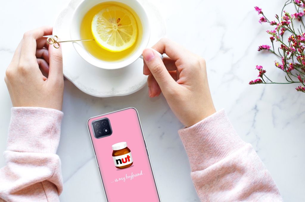 Hou je van chocoladepasta, dan is dit het perfecte OPPO A53 5G | OPPO A73 5G Siliconen Case voor jou. De chocoladepasta is enorm populair, dus is het niet zo heel gek dat je een ‘Nut Boyfriend’ tpu case in een roze kleur voorbij ziet komen in ons assortiment design hoesjes met illustraties. Dit is een zeer flexibel hoesje, dat altijd in je broekzak past. Alleen de bovenkant van dit hoesje wordt door ons bedrukt met de pasta, op zeer duurzame manier. Mensen die houden van de bekendste pasta van het moment, kiezen voor dit degelijke tpu hoesje. Er staan geen foto’s op de zijkanten van een tpu case. Wel kun je zelf een eigen tekst toevoegen.