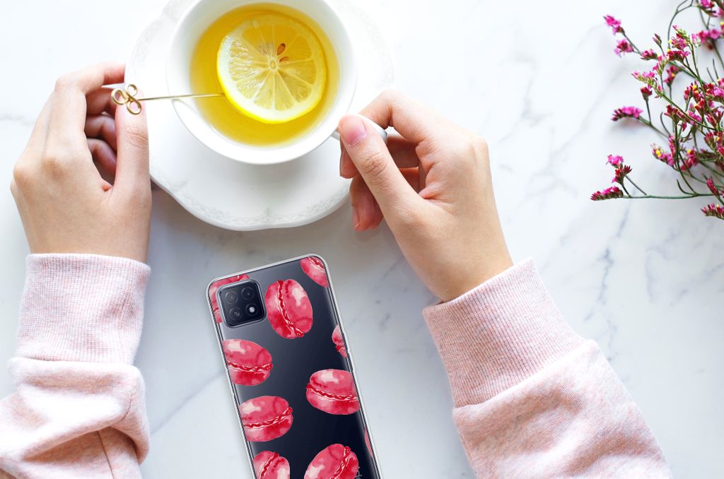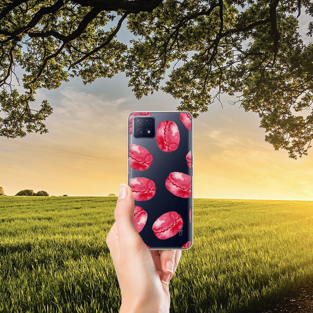 Dit tpu hoesje met Pink Macarons is een zeer opvallende bescherming voor jouw smartphone. Macarons zijn Franse koekjes: kleine, rond en luchtig. Ze worden in veel verschillende smaken gemaakt, herkenbaar aan de verschillende kleuren zoals chocolade (donkerbruin), mokka (middenbruin), kersen (rood), pistache (groen), aardbei (roze), framboos (karmijn). Deze kleuren kun je niet allemaal zien op dit fraaie design hoesje met roze macarons. Heb je altijd al een OPPO A53 5G | OPPO A73 5G Siliconen Case willen hebben met roze macarons? Grijp dan nu je kans. Deze case heeft zeer veel goede eigenschappen, zoals elastisch vermogen, flexibiliteit en schokbestendigheid. Dit design hoesje met roze macarons wordt aan de bovenkant bedrukt, de zijkanten blijven doorzichtig. De case heeft opstaande randen aan de voorzijde en beschermt samen met een screenprotector jouw telefoon perfect. De case heeft ook een handige standaard.