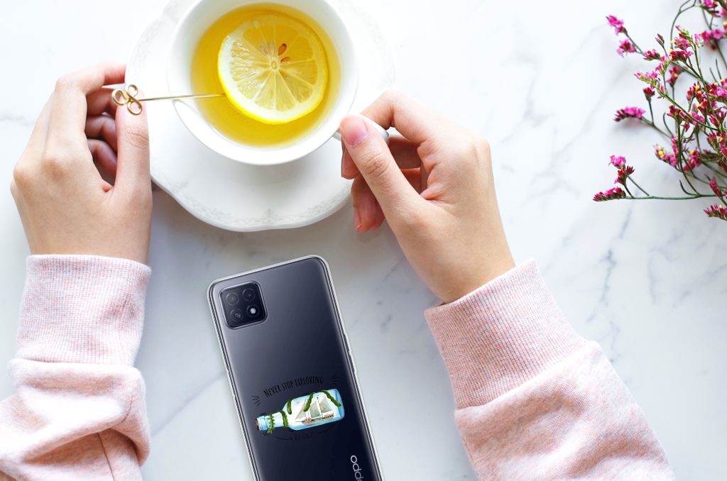 Dit leuke design met een schip in een fles is voor de echte avonturier of reiziger. Dankzij de tekst ‘Never stop exploring: Go for it’ word je altijd herinnerd aan het feit dat het volgende avontuur weer op de loer ligt! Dit design staat op een Telefoonhoesje met Naam voor je OPPO A53 5G | OPPO A73 5G. TPU is flexibel en heel erg sterk. Zo is je telefoon aan de achterkant en de randen heel goed beschermd. De case is aan de bovenkant bedrukt, de randen blijven transparant. Het TPU-hoesje is perfect te combineren met een screenprotector, zo zijn je telefoon en je beeldscherm altijd goed beschermd.