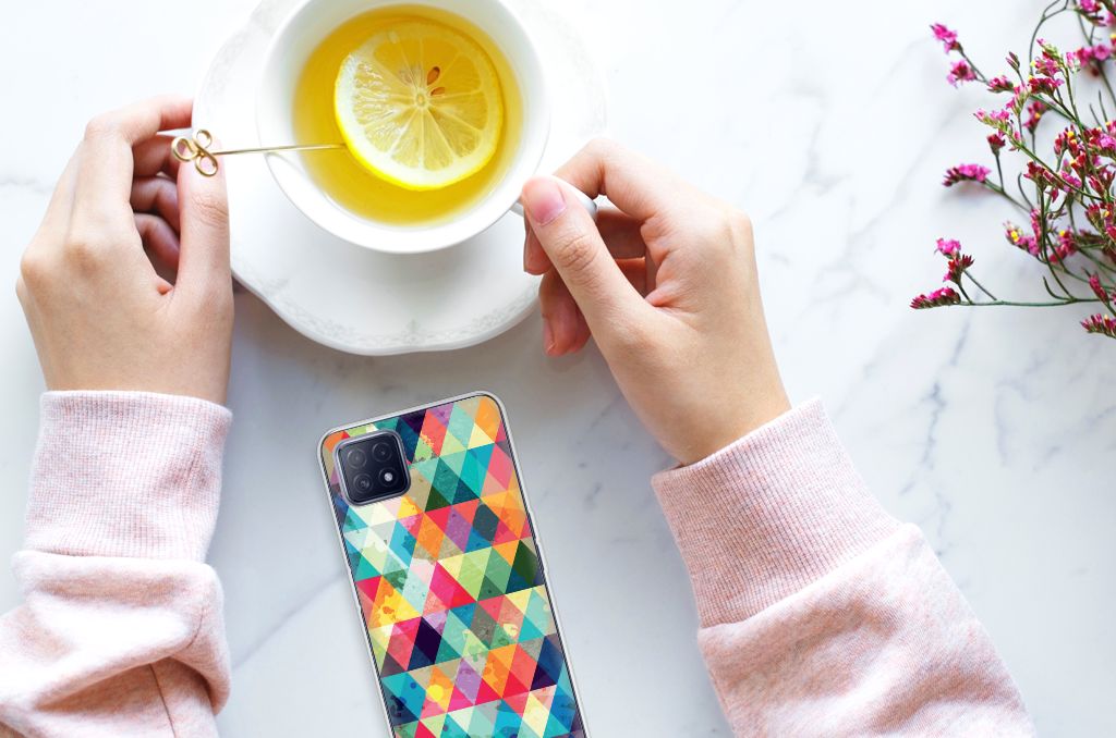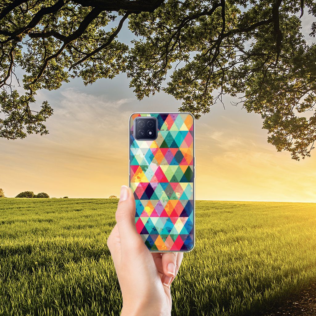 Van dit geruite design hoesje moet je een beetje houden. Maar als je het eenmaal in bezit hebt, ben je waarschijnlijk binnen no time verkocht. Het design heeft ruitjes in alle kleuren van de regenboog en door de grijze achtergrond kan het hoesje enigszins druk overkomen. Maar tegelijkertijd is dit de kracht van het hoesje. Met dit design hoesje Geruit zal je namelijk heel erg opvallen. Dit is voor veel vooral jonge smartphone gebruikers een belangrijk voordeel. Deze geruite print staat op een OPPO A53 5G | OPPO A73 5G TPU bumper. Dit zeer flexibele smartphone hoesje heeft alle nodige uitsparingen en past altijd in je broekzak. De case is aan de bovenkant bedrukt, de randen blijven transparant.