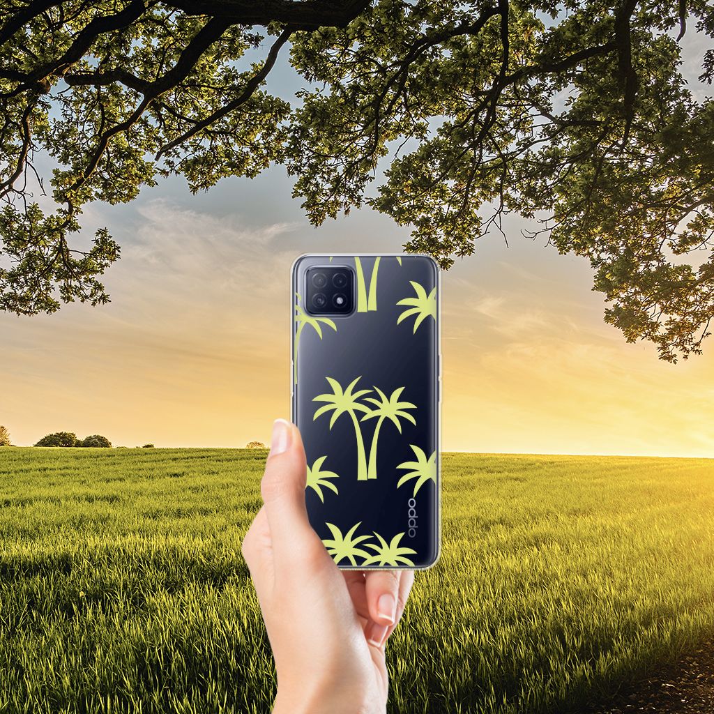 Je krijgt direct een vakantiegevoel als je kiest voor een OPPO A53 5G | OPPO A73 5G TPU Case met opdruk van lichtgroene Palmtrees. Sommige mensen hebben ook een palmboom in hun tuin staan, wij kunnen er meerdere op een tpu case zetten. Jouw smartphone is op en top beschermd met een tpu case met lichtgroene palmbomen tegen een witgrijze achtergrond en ziet er schitterend uit. Het is heel verstandig je telefoon te beschermen met een tpu hoesje met palmbomen tegen een witgrijze achtergrond. De TPU case met print van lichtgroene palmbomen beschermt jouw telefoon voornamelijk aan de achterzijde. De randen van de case worden niet bedrukt met lichtgroene palmbomen. TPU is zeer flexibel.