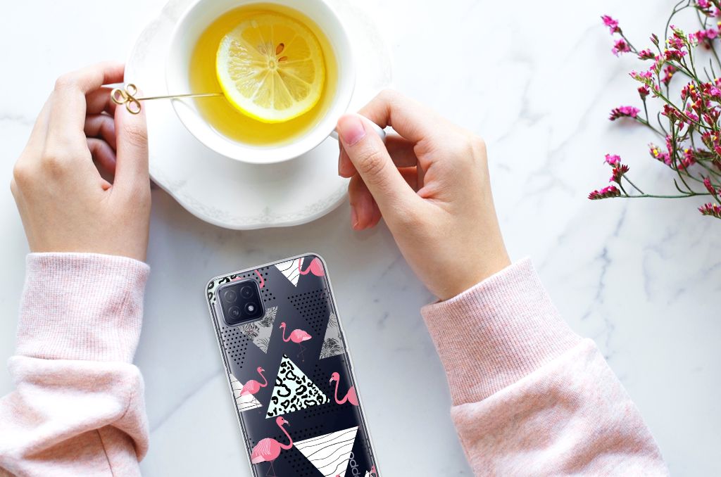 Een OPPO A53 5G | OPPO A73 5G TPU Hoesje met Flamingo Triangle is in vele opzichten bijzonder. De rode flamingo op het hoesje komt oorspronkelijk uit het Caraïbische gebied. Stel dat je in deze regio vakantie aan het vieren bent, dan val je zonder meer op met dit hoesje met flamingo’s en driehoeken. Deze tpu case met flamingo’s en driehoeken beschermt je telefoon met name aan de achterkant en de zijkanten, is op maat gemaakt voor jouw smartphone en ligt altijd goed in je hand. De TPU case met flamingo’s en driehoeken en is ook zeer flexibel. De zijkanten blijven transparant.