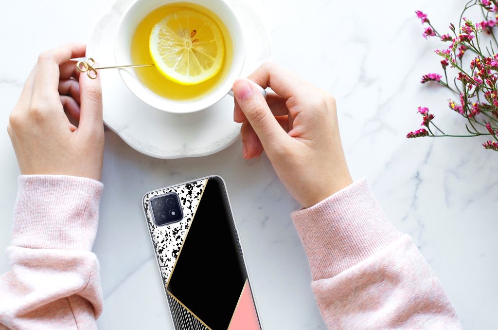 TPU Hoesje OPPO A53 5G | OPPO A73 5G Zwart Roze Vormen Design