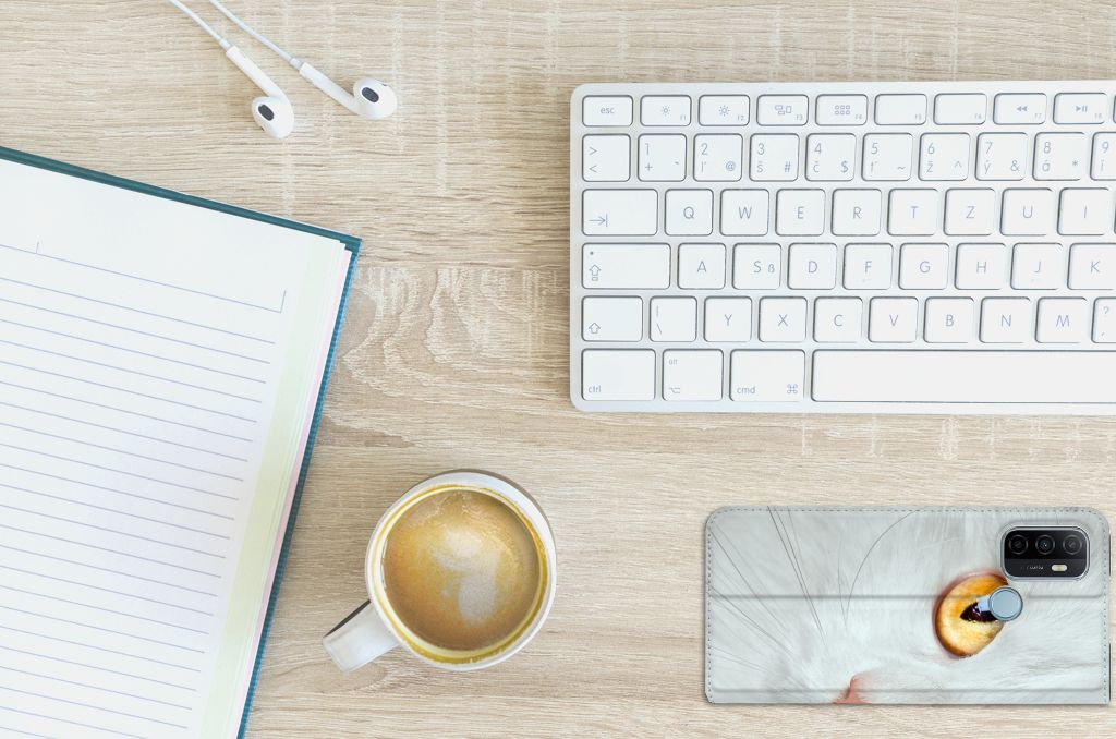 Witte katten zijn natuurlijk extra speciaal, vandaar we een exemplaar op een design hoesje hebben gezet. Een witte kat schijnt trouwens ook slechter te kunnen horen dan katten met een andere kleur. Deze witte kat staat op een zeer prominente wijze op een stand case. Deze stand case met witte kat ziet er geweldig uit en is voorzien van verschillende uitsparingen en een speciale standaard. Een OPPO A53 | A53s Hoesje maken met witte kat beschermt jouw smartphone perfect. Alle zijden van de case zijn bedrukt. Jouw smartphone wordt erg duurzaam met dit design hoesje. Het TPU aan de binnenzijde is zeer flexibel en het pu-leer oogt chique. Verder heeft de case een houder voor bijvoorbeeld je rijbewijs aan de binnenkant.