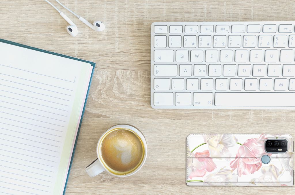 Een bosje bloemen doet een mens (en zijn smartphone) goed. De witte en roze bloemen op dit OPPO A53 | A53s Smart Cover geven jouw smartphone een zeer mooie uitstraling. Je wordt er ook meteen een stuk rustiger van als je aan het appen of aan het bellen bent. Valt dan je telefoon op de grond, dan zal er dankzij de stand case met het design Lovely Flowers ontstaan. Onze stand cases met roze en witte bloemen zien er zeer prettig uit en zijn heel praktisch, wat blijkt uit onder meer het vakje aan de binnenkant en de handige standaard waarmee je de smartphone rechtop op tafel neer kunt zetten. De roze en witte bloemen passen goed op alle zijden van de case. Op deze stand case van leer en TPU (houder aan de binnenkant) kun je trouwens ook je eigen bloemige ontwerp zetten. In een paar simpele stappen maak je zelf een stand hoesje met daarop jouw mooiste bloemen.
