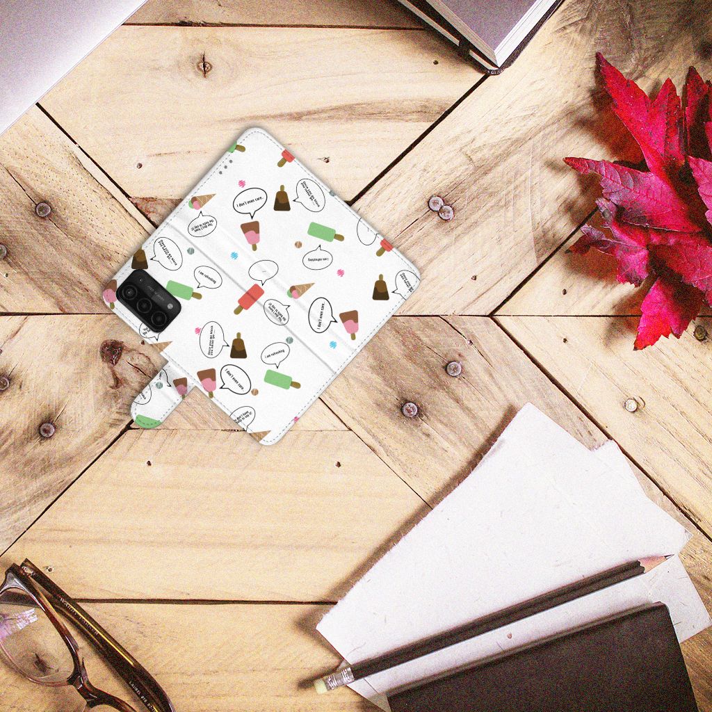 Van dit vrolijke OPPO A54 5G | A74 5G | A93 5G Book Cover met daarop verschillende soorten ijsjes met tekstwolkjes krijg je sowieso een vrij en zomers gevoel. De zomer komt naar je toe met deze print van ijsjes met tekstwolkjes. Ben je op het strand, dan ontbreekt een lekker ijsje natuurlijk niet. Net zoals je je smartphone bij de hand hebt, met daaromheen een design hoesje met bijzondere ijsjes en tekstwolkjes. Jouw telefoon kan dan de bescherming in de vorm van een boekhoesje met ijsjes zeer goed gebruiken. Alle zijden van dit hoesje worden bedrukt met ijsjes en tekstwolkjes. De case heeft een lipje aan de buitenzijde voor het afsluiten van de telefoon en de houder aan de binnenzijde is van TPU. Onder alle weersomstandigheden zal deze case met verschillende opbergvakjes perfect functioneren, ook op het strand met een ijsje in je hand.