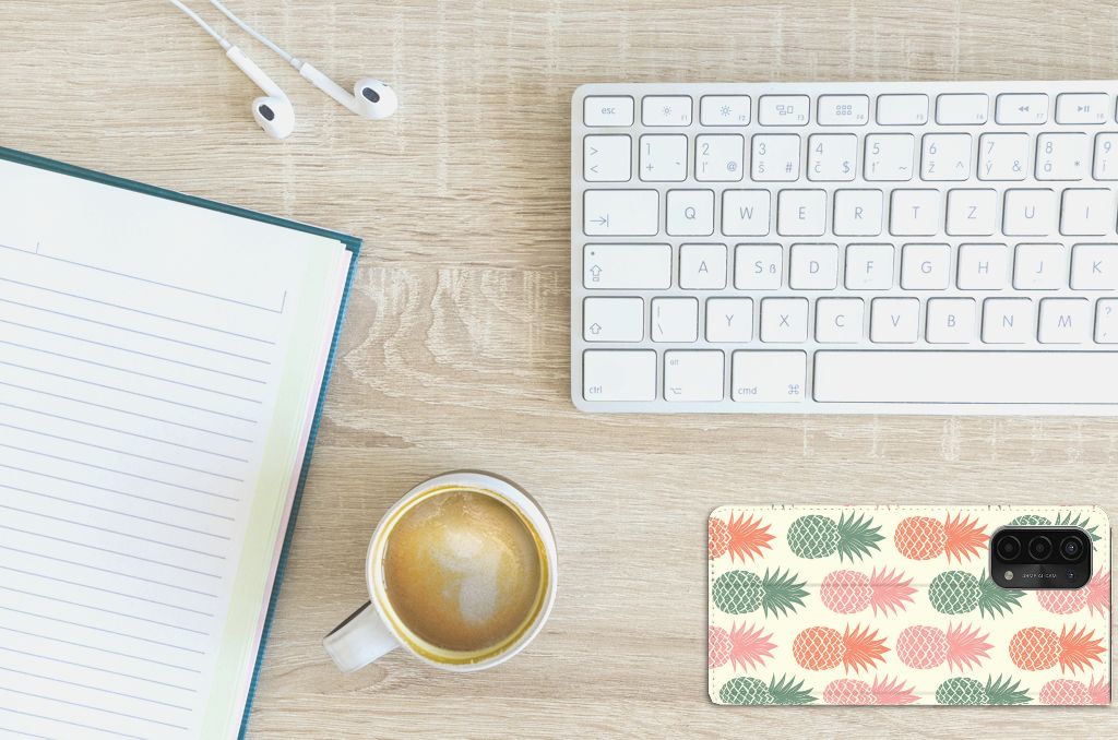 Ananas is een woord uit het Tupi, de taal van de Tupi-indianen, en betekent uitmuntende vrucht. Dit fruit van zeer hoge kwaliteit staat op onze superieure boekhoesjes, stand cases, hard cases en TPU cases. Jij blijft er gezond uitzien als je zo nu en dan een hap neemt van een Ananas , jouw smartphone blijft tip top in orde als je er een leuk telefoonhoesje omheen doet. Een ananas heeft stevig, veerkrachtig vruchtvlees. Een beetje te vergelijken met het TPU in onze hoesjes. TPU is elastisch materiaal, dat zeer buigzaam is. Vandaar dat het zeer schokbestendig is. Het ananas design staat op een stand case. Deze OPPO A54 5G | A74 5G | A93 5G Flip Style Cover beschermt jouw telefoon aan alle kanten en beschikt over een 1 opbergvakje en een speciale standaard. Het hoesje wordt afgesloten met een magneet aan de binnenzijde. De houder aan de binnenzijde is van TPU.
