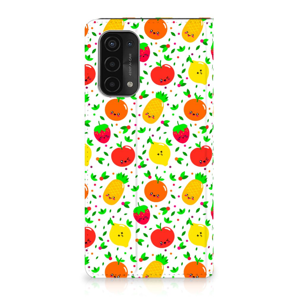 Een fris, fruitig en vrolijk hoesje, deze case met afbeeldingen van aardbeien, ananassen, appels, sinaasappels en citroenen. Minstens twee stuks fruit per dag wordt aanbevolen als dagelijkse hoeveelheid voor de mens. Dit verkleint de kans op allerlei ziekten. Dus met het aantal stukken fruit op de OPPO A54 5G | A74 5G | A93 5G Flip Style Cover zou je wel een maandje zoet moeten zijn. Met het hoesje zelf kun je je hele leven doen, dit is namelijk niet stuk te krijgen. Dit komt door het sterke en flexibele materiaal waarvan het gemaakt is. De vrolijk stemmende case het desing Fruits maakt jouw telefoon dus zeer duurzaam. Zorg ervoor dat jouw smartphone gezond blijft en kies voor dit hoesje met frivool fruit. Een stand case met fruit beschermt jouw telefoon aan alle kanten en beschikt over een 1 opbergvakje en een speciale standaard. Het hoesje met fruit wordt afgesloten met een magneet aan de binnenzijde. De houder aan de binnenzijde is van TPU.
