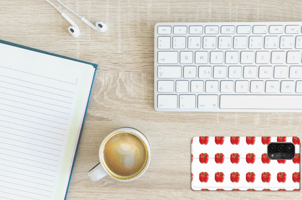 Er zit pit in jouw OPPO A54 5G | A74 5G | A93 5G Flip Style Cover dankzij dit design met rode paprika’s. Paprika’s zijn er in allerlei kleuren en vormen en ze hebben gemeen dat ze heel erg gezond zijn. De rode paprika’s op deze case staan op een grijs met witte geblokte achtergrond en vormen een opvallende verschijning. Heb jij ooit iemand in je nabije omgeving rond zien lopen met een design hoesje met rode paprika’s? Waarschijnlijk niet. Dit stand hoesje met rode paprika’s beschermt jouw telefoon aan alle zijden en beschikt over een opbergvakje voor een pasje of briefgeld. De case sluit perfect af met de magneet aan de binnenzijde. Zeker weten dat je met dit hoesje met rode paprika’s een smartphone accessoire te pakken hebt waarmee je jezelf in de schijnwerpers zet. De houder aan de binnenzijde van de stand case met rode paprika’s is van TPU. Als je andere kleuren paprika’s op je hoesje wilt, raden we je aan ons assortiment design hoesjes te bekijken of zelf een hoesje te ontwerpen.