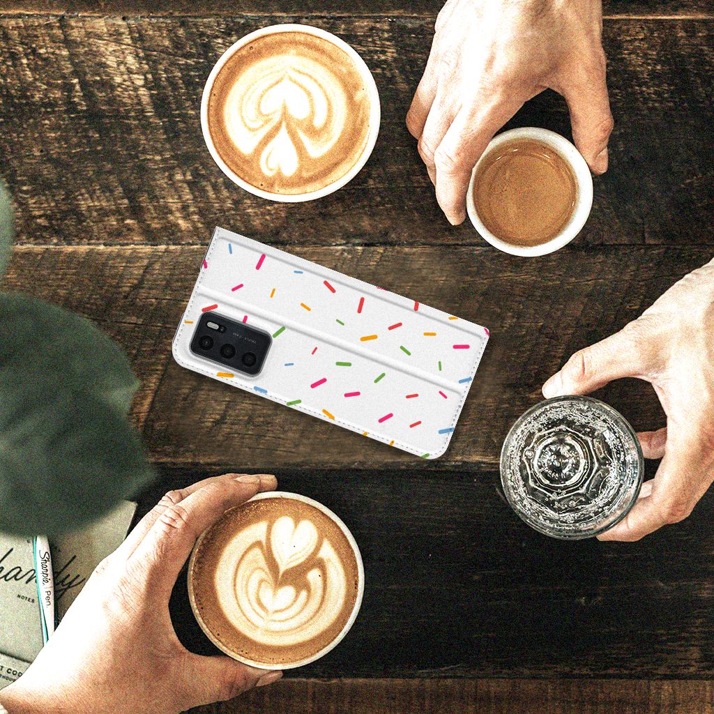 De cartoon met Donut op dit design hoesje geeft jouw smartphone een grappige en vrolijke uitstraling. De OPPO A54s | A16 | A16s Flip Style Cover zorgt ervoor dat je je schouders op zult halen als je telefoon een keer op de grond valt. Omdat er geen schade zal optreden kun jij je weg weer heel makkelijk vervolgen. De grappige Donut Care stand case is een zeer populair product. Allereerst is het nergens anders te krijgen. Het design is namelijk van de hand van onze eigen ontwerper. Daarnaast zal de case jouw smartphone aan alle zijden beschermen. Ook heeft het Donut Care hoesje een vakje aan de binnenzijde en een speciale standaard. Ook kun je je eigen unieke hoesje ontwerpen, met eigen cartoons, foto’s en teksten. De houder aan de binnenzijde van de Donut Care case is van TPU, de buitenzijde van PU leer.
