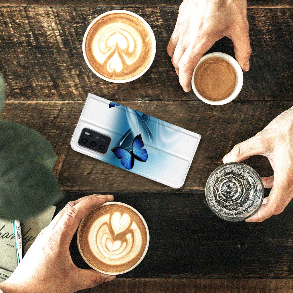 Deze vrolijke OPPO A54s | A16 | A16s Hoesje maken met blauwe vlinders is een ware eyecatcher. De meeste vlinders hebben een onopvallende vleugelkleur, andere soorten hebben juist heldere en felle kleuren. Wij kunnen deze blauwe vlinders op een zeer handige stand case zetten. Deze hoesjes zijn het meest gewild. Met onze geavanceerde printer zetten we de afbeelding van vlinders op alle zijden van het hoesje. De case met vlinders heeft aan de binnenkant een houder waarin je jouw creditcard of ander pasje kwijt kunt. De case heeft bovendien een handige standaard. Verder is je telefoon natuurlijk maximaal beschermd met deze stand case met print van blauwe vlinders. De houder aan de binnenzijde van het design hoesje met vlinder print is van TPU.