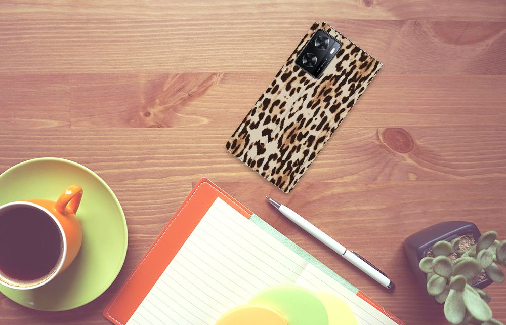 Het luipaard wordt ook wel een panter genoemd en is een sluwe kat. De bruingele vacht met een patroon van rozetachtige vlekken geeft een goede schutkleur. Dit zie je ook op een fraaie manier afgebeeld op dit super stoere hoesje met luipaardprint. Mensen die indruk willen maken kopen deze stand case met Leopard print. Een OPPO A57 | A57s | A77 4G Hoesje maken is van alle markten thuis. Het is praktisch – vanwege onder meer het opbergvakje en de magnetische sluiting aan de binnenzijde – maar beschermt jouw smartphone tevens op een geweldige manier. Het luipaard is sterk en behendig en wellicht typeert jou dat ook wel. Dan past dit hoesje met luipaard perfect bij jou. De houder van TPU aan de binnenzijde is minstens zo sterk als het luipaard. Jouw telefoon is perfect beschermd en de case heeft tevens een standaard.