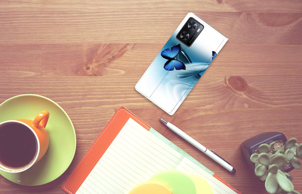 Deze vrolijke OPPO A57 | A57s | A77 4G Hoesje maken met blauwe vlinders is een ware eyecatcher. De meeste vlinders hebben een onopvallende vleugelkleur, andere soorten hebben juist heldere en felle kleuren. Wij kunnen deze blauwe vlinders op een zeer handige stand case zetten. Deze hoesjes zijn het meest gewild. Met onze geavanceerde printer zetten we de afbeelding van vlinders op alle zijden van het hoesje. De case met vlinders heeft aan de binnenkant een houder waarin je jouw creditcard of ander pasje kwijt kunt. De case heeft bovendien een handige standaard. Verder is je telefoon natuurlijk maximaal beschermd met deze stand case met print van blauwe vlinders. De houder aan de binnenzijde van het design hoesje met vlinder print is van TPU.