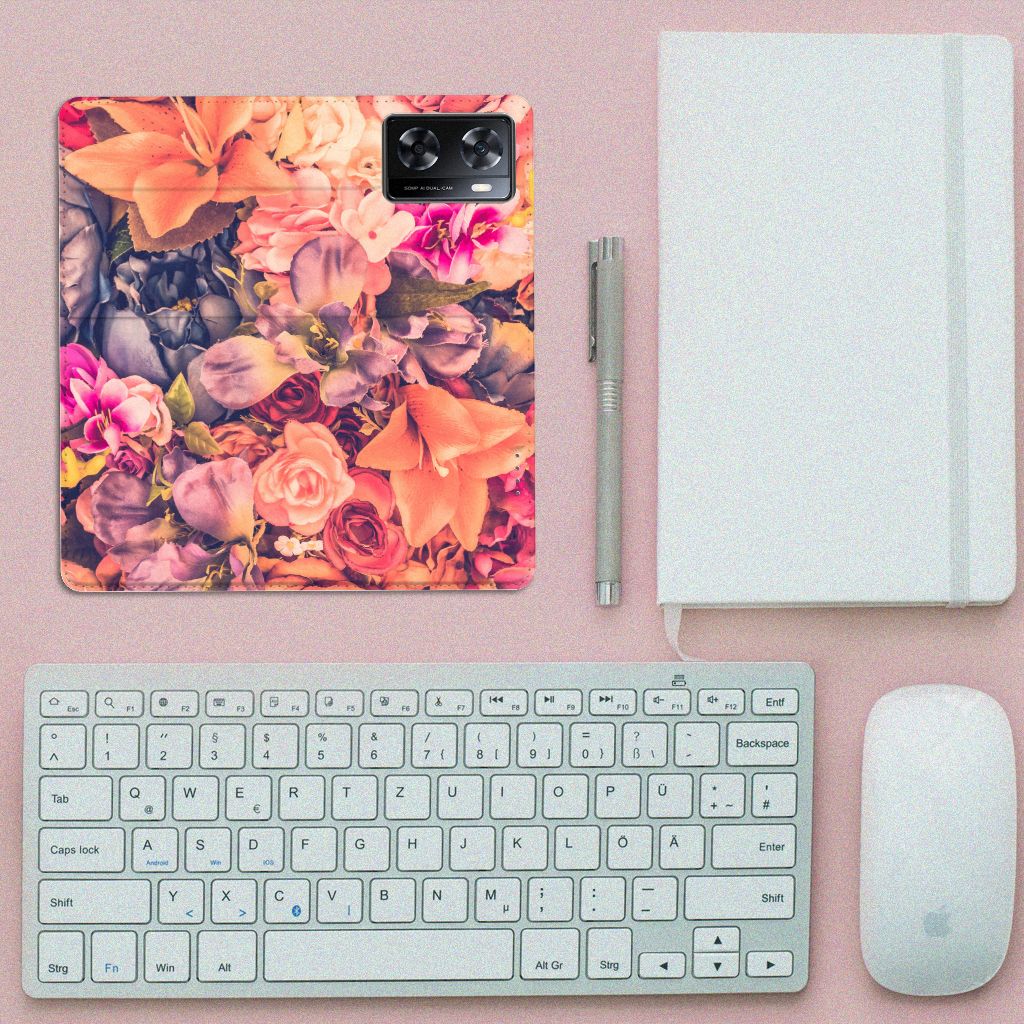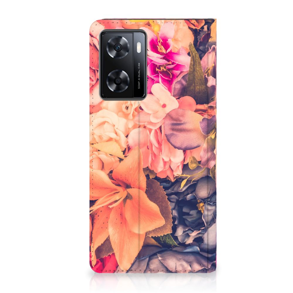 Dit Bosje Bloemen doet een mens en zijn smartphone goed. De oranje, paarse en roze bloemen op deze OPPO A57 | A57s | A77 4G Smart Cover geven jouw smartphone een zeer sierlijke uitstraling. Je wordt er ook meteen vrolijker van als je aan het appen, mailen of aan het bellen bent. Valt dan je telefoon op de grond, dan zal er dankzij de stand case met oranje, paarse en roze bloemen geen schade ontstaan. Onze stand cases met oranje, paarse en roze bloemen bieden de allerbeste bescherming en zijn heel praktisch, wat blijkt uit onder meer het vakje aan de binnenkant en de handige standaard waarmee je de smartphone rechtop op tafel neer kunt zetten. De oranje, paarse en roze bloemen passen goed op alle zijden van de case. Op deze stand case van leer en TPU (houder aan de binnenkant) is het ook mogelijk je eigen ontwerp te zetten. In no time maak je zelf een stand case met daarop foto’s van jouw favoriete bloemen.