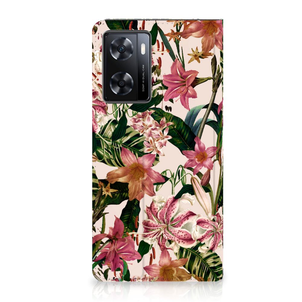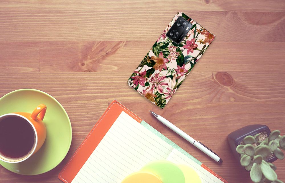 Dit Flowers design is een zegen voor de mens en zijn smartphone. De paarswitte bloemen en groene bladeren op deze OPPO A57 | A57s | A77 4G Smart Cover geven jouw smartphone een zeer sierlijke uitstraling. Je krijgt er meteen een goed gevoel bij als je aan het appen, mailen of aan het bellen bent. Valt dan je telefoon op de grond, dan zal er dankzij de stand case met paarswitte bloemen en groene bladeren geen schade ontstaan. Onze stand cases met paarswitte bloemen en groene bladeren bieden de allerbeste bescherming en zijn heel praktisch, wat blijkt uit onder meer het vakje aan de binnenkant en de handige standaard waarmee je de smartphone rechtop op tafel neer kunt zetten. De paarswitte bloemen en groene bladeren komen op alle zijden van de case te staan. Op deze stand case van leer en TPU (houder aan de binnenkant) kun je in no time zelf foto’s van jouw favoriete bloemen zetten.