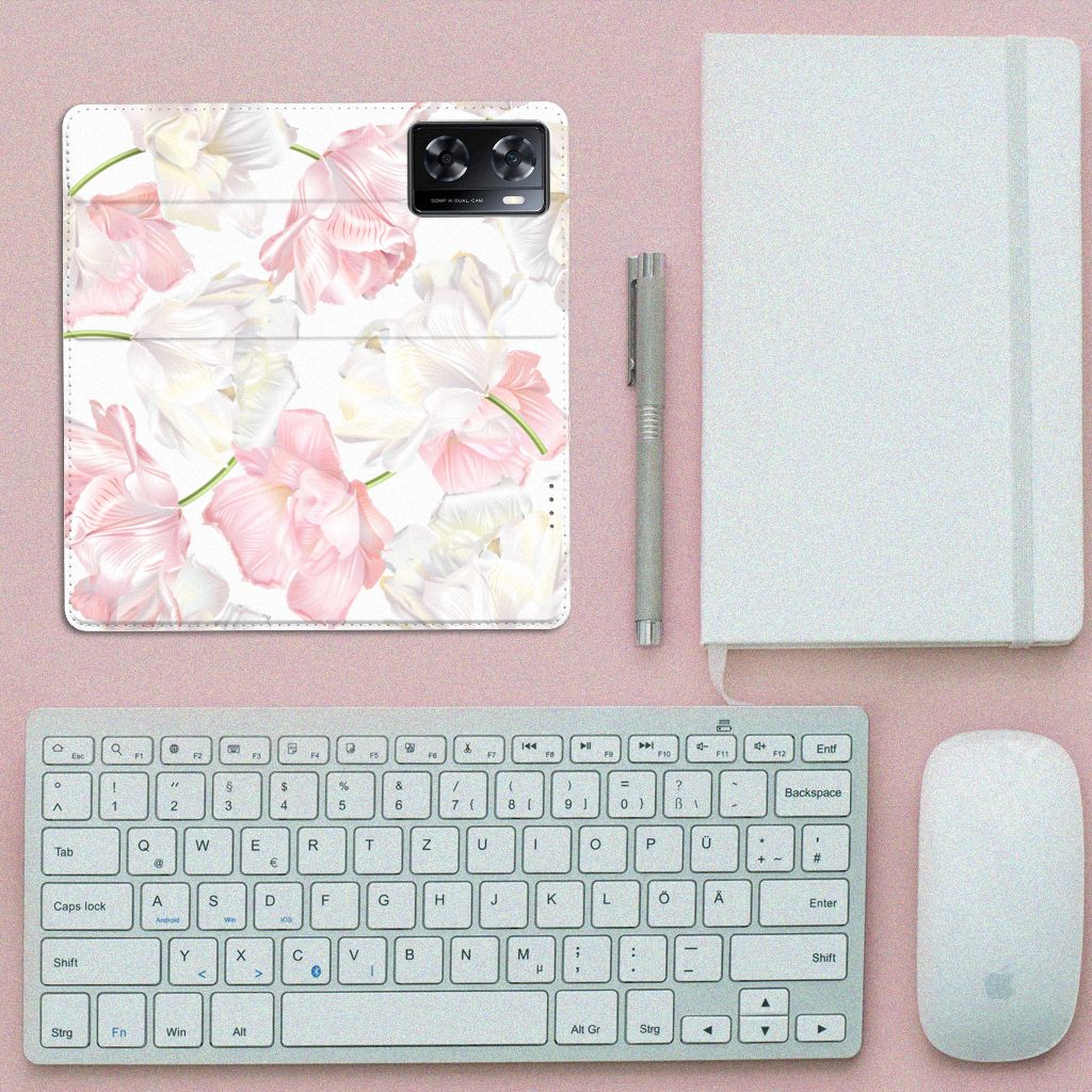 Een bosje bloemen doet een mens (en zijn smartphone) goed. De witte en roze bloemen op dit OPPO A57 | A57s | A77 4G Smart Cover geven jouw smartphone een zeer mooie uitstraling. Je wordt er ook meteen een stuk rustiger van als je aan het appen of aan het bellen bent. Valt dan je telefoon op de grond, dan zal er dankzij de stand case met het design Lovely Flowers ontstaan. Onze stand cases met roze en witte bloemen zien er zeer prettig uit en zijn heel praktisch, wat blijkt uit onder meer het vakje aan de binnenkant en de handige standaard waarmee je de smartphone rechtop op tafel neer kunt zetten. De roze en witte bloemen passen goed op alle zijden van de case. Op deze stand case van leer en TPU (houder aan de binnenkant) kun je trouwens ook je eigen bloemige ontwerp zetten. In een paar simpele stappen maak je zelf een stand hoesje met daarop jouw mooiste bloemen.