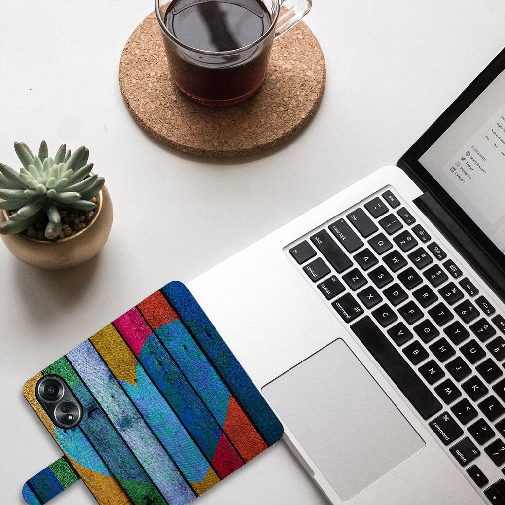 OPPO A58 4G Bookstyle Case met pasjes Wood Heart