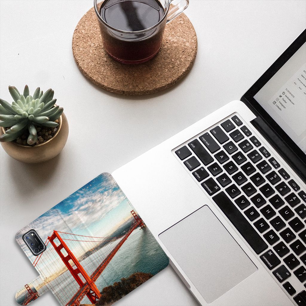 De Golden Gate Bridge is een technisch meesterwerk. Een van de langste en hoogste hangbruggen ter wereld is een schitterend staaltje van ingenieurskunst en een prachtig monument, dat met de rode kleur fel afsteekt tegen de omgeving. Dit monument komt op een fraaie manier tot uitdrukking op een OPPO A72 | OPPO A52. Het telefoonhoesje met design heeft verschillende vakjes, waarin je pasjes en briefgeld kunt stoppen. Jouw telefoon past precies in de houder van TPU. De Golden Gate Bridge is vanuit vele plekken in en rond San Francisco op een spectaculaire manier zichtbaar. Een deel van de brug komt ook op het lipje te staan, dat jouw Flip Cover aan de buitenkant perfect afsluit. Jouw telefoon is dus aan alle kanten beschermd met dit design hoesje met Golden Bridge print. Alle kanten van het telefoonhoesje worden bedrukt met foto’s.