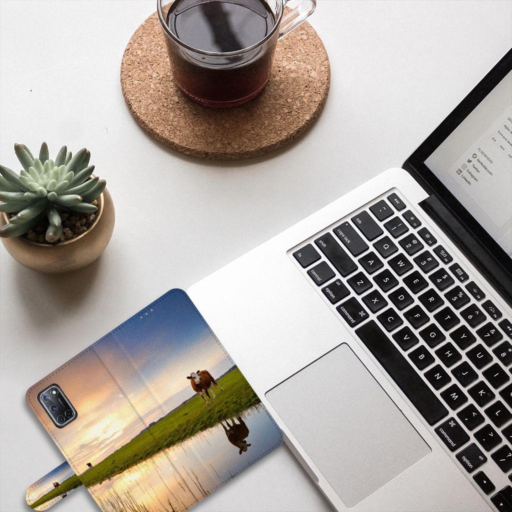 Houd jij van de natuur en het boerenleven? Dan is dit telefoonhoesje, waar een koe opstaat, wel wat voor jou. Op de bookcase staat een idyllisch plaatje van een koe in een weiland. Dit levert een rustig en vrolijk OPPO A72 | OPPO A52 hoesje op. Alle kanten van het Telefoonhoesje met Pasjes zijn bedrukt, inclusief het sluitlipje. Daarnaast beschermt dit hoesje jouw telefoon aan alle kanten. Ook als je hem op het scherm laat vallen, is er niets aan de hand als dit hoesje om jouw telefoon zit. Dan blijft hij namelijk gewoon goed beschermd. En een goed beschermde telefoon is erg belangrijk, een ongelukje zit in een klein hoekje en je wilt niet dat dit je honderden euro’s gaat kosten.