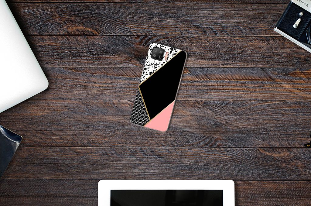 - Met een tpu-siliconen hoesje met roze, zwarte en witte vlakken blijft jouw telefoon in tact.