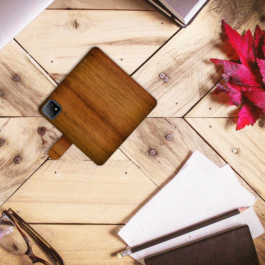 OPPO A73 5G Book Style Case met pasjeshouder Donker Hout